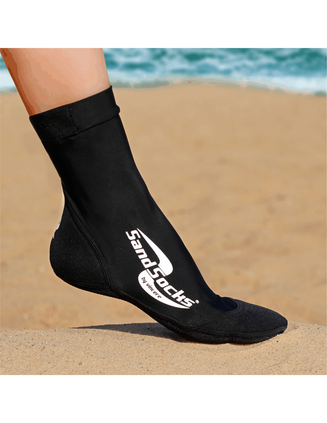 Paplūdimio tinkliniui, tenisui, futbolui, rankiniui ir kitoms paplūdimio sporto šakoms, sukurtas neopreninis Action Flex padas, padės Jums greičiau judėti ir padidinti šuolį. Neopreno pado dėka, Jūsų pėdos liks apsaugotos nuo pūslelių ir nutrinimų. Kojinės yra pagamintos iš orui pralaidžios ir greitai džiūstančios spandeks medžiagos. Tinka nešioti tiek ant avalynės, tiek po avalyne. Paplūdimio tinklinio kojinės Sand Socks gali naudoti tiek profesionalūs sportininkai, tiek mėgėjai.Sand Socks tai komfortas ir patikima apsauga paplūdimio ir vandens sporto šakų mėgėjams.