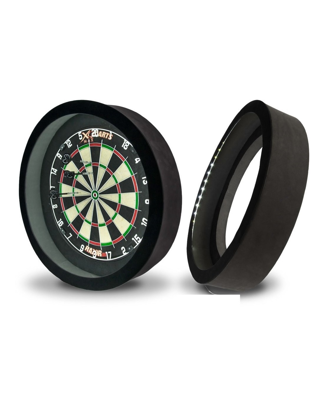 Įsigijus šį smiginio taikinio, vaizdas bus ryškus ir be jokių šešėlių. Korpusas pagamintas iš EPP putplaščio ir padentas mikšta sintetine medžiaga, todėl šis apšvietimas dar ir atlieka kaip sienos apsaugos funkciją. Taikinio apsaugos su apšvietimu tvirtinimui nereikalingi jokie įrankiai ir montavimo darbai - papraščiausiai uždėkite apsaugą ant taikinio.