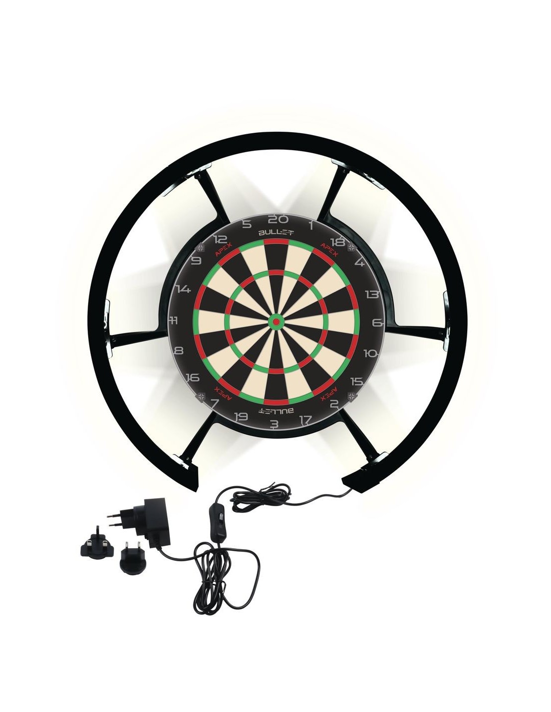 „Bullet Radion 300“ LED žiedas sukurtas tam, kad jūsų dartų lenta taptų dar geresnė dėl tikslaus apšvietimo ir išmanaus dizaino. Pagamintas iš patvaraus ABS plastiko, šis modulinis LED žiedas pasižymi profesionalia išvaizda ir lengvu montavimu. Turėdamas 5 sekcijas ir 28 didelio intensyvumo LED kiekvienoje sekcijoje, jis sukuria bendrą 1000 liumenų šviesos srautą, užtikrindamas ryškų, tolygų apšvietimą be šešėlių. Sistemą sudaro 3 magnetinės kojelės, kiekviena su dvigubais magnetais saugiam tvirtinimui, ir 2 galiniai dangteliai, užtikrinantys nepriekaištingą apdailą.