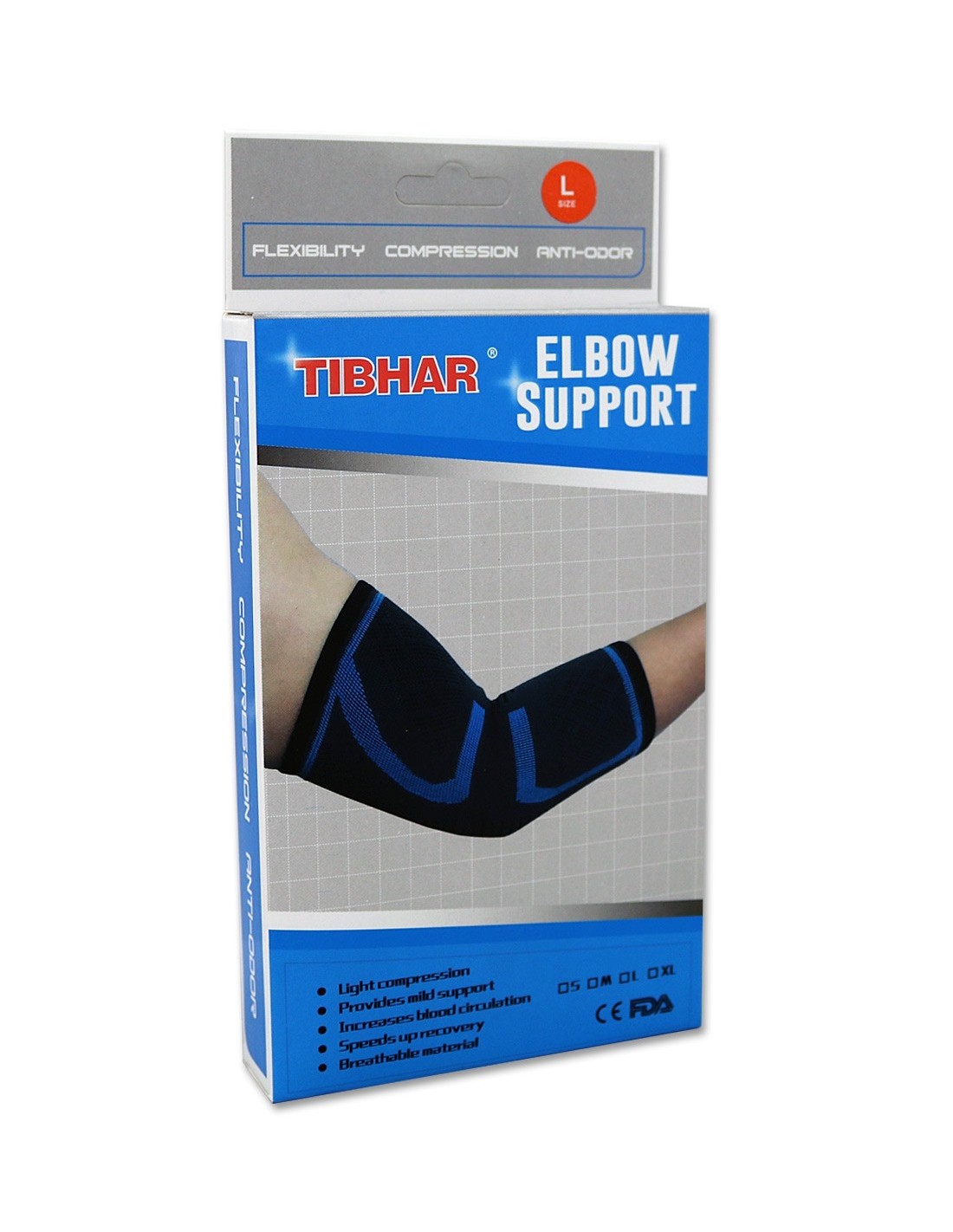 Elastinis kompresinis alkūnės įtvaras. Nesulaiko drėgmės, neskleidžia kvapo.