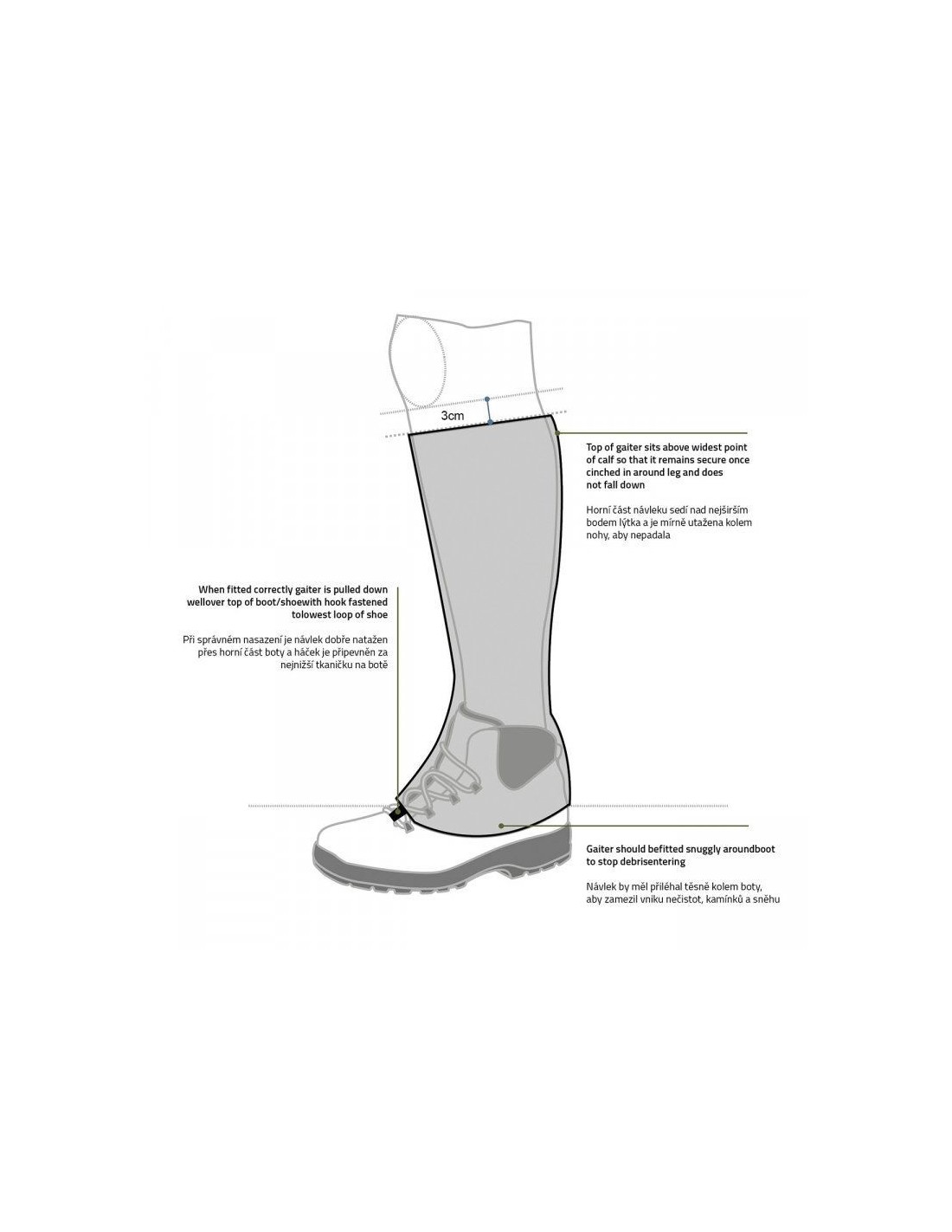 Getrai su DRY membrana. Atsparus vandeniui, kvėpuojantis. Kulkšnys ir priekinė dalis sutvirtinta Cordura medžiaga, kuri prailgina jų tarnavimo laiką ir padidina bendrą patvarumą. Viršutinė getrų dalis pagaminta iš Taslan. Lengva valdyti, užsegama priekinėje pusėje - velcro ir užtrauktuku. Viršuje galima užsegti elastiniu guminiu dirželiu. Tvirtas dirželis po kojomis.