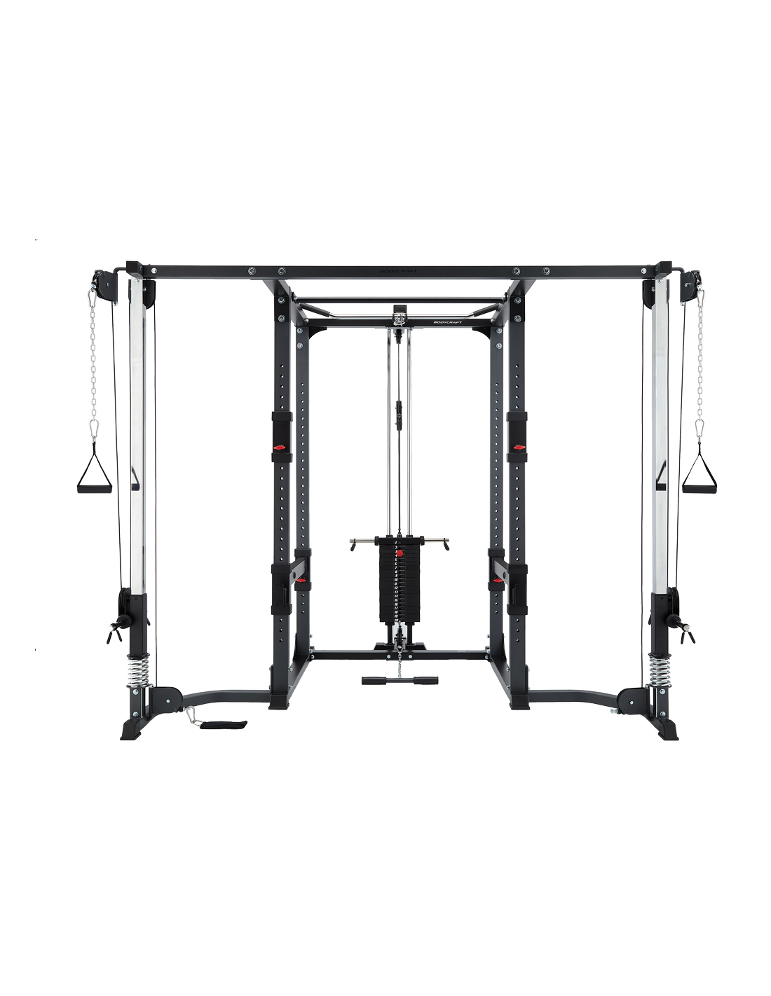 Šiame galios stove yra viskas, ko reikia pradiniam jėgos treniruočių nuotykiui, ypač platus, patogus naudoti. Reguliuojamos stebėjimo svirties svoriams laikyti ir saugos skersinio strypo rankenos tolimesniam pratimui. 2 dideli smeigtukai naudojami kritimams, atvirkštiniams kritimams ir atsispaudimams, siekiant padidinti patvarumą. Kad šis įrenginys būtų pritaikytas plačiau, galima naudoti smakrą pakeliamą strypą, naudojamą su juostomis ir priedais, pasirenkamus priedus, pvz., nuleidžiamus skersinius su 200 svarų svorio krūva ir kabelių perjungimą, kuris praturtins jūsų namų sporto salę.