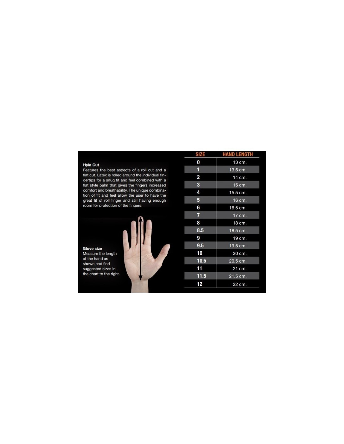 Riešas: Plati latekso ir audinio juosta sutvirtina riešą ir užtikrina lengvą ir greitą pirštinės užsidėjimą ar nusiėmimą.