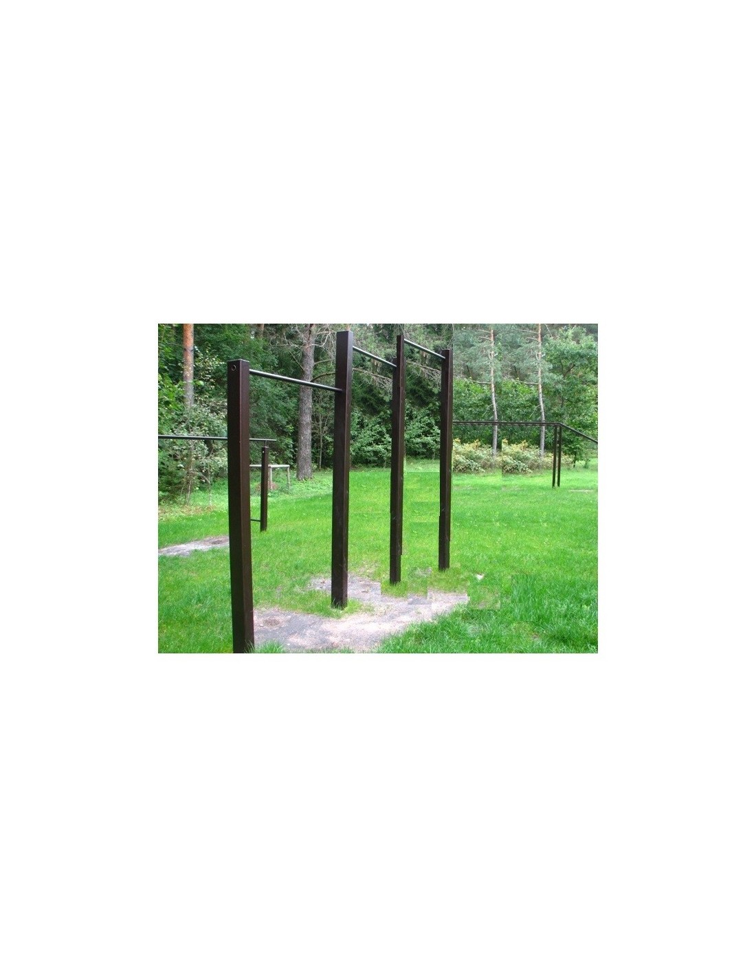 Įbetonuojamas, stacionarus, trigubas skersinis, pagamintas iš 100x100mm metalo profilio, skersinukai iš 34mm plieno vamzdžio, dažytas milteliniu būdu. Matmenys: 1 skersinio aukštis 180cm, 2 skersinio aukštis 210cm, 3 skersinio aukštis 240cm, atstumas tarp skersinių 120cm
