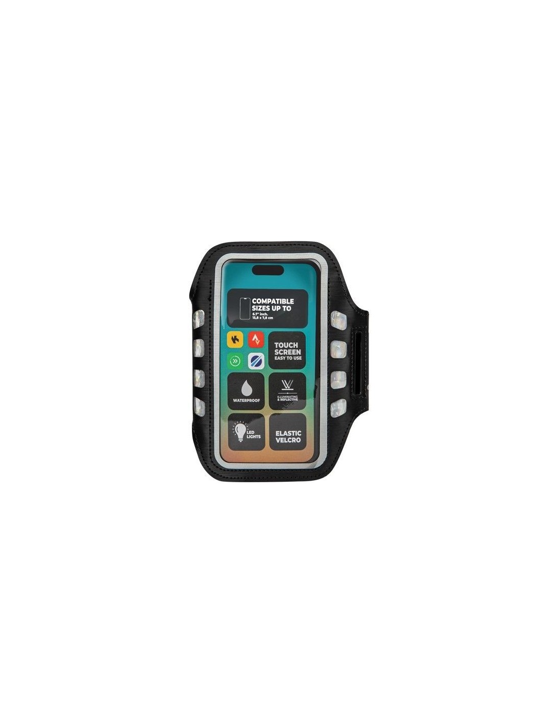 Šis telefono laikiklis leidžia naudotis telefonu ir klausytis muzikos treniruotės metu. Idealiai tinka fitnesui, bėgimui, vaikščiojimui ir visoms kitoms sporto šakoms viduje ir lauke. Telefono dėklas apsaugo telefoną ir leidžia naudotis jutikliniu ekranu. Dėl reguliuojamos elastinės juostos puikiai priglunda prie bet kurios rankos, todėl galite laisvai judėti. Juosta lengvai užsisega Velcro dirželiu.