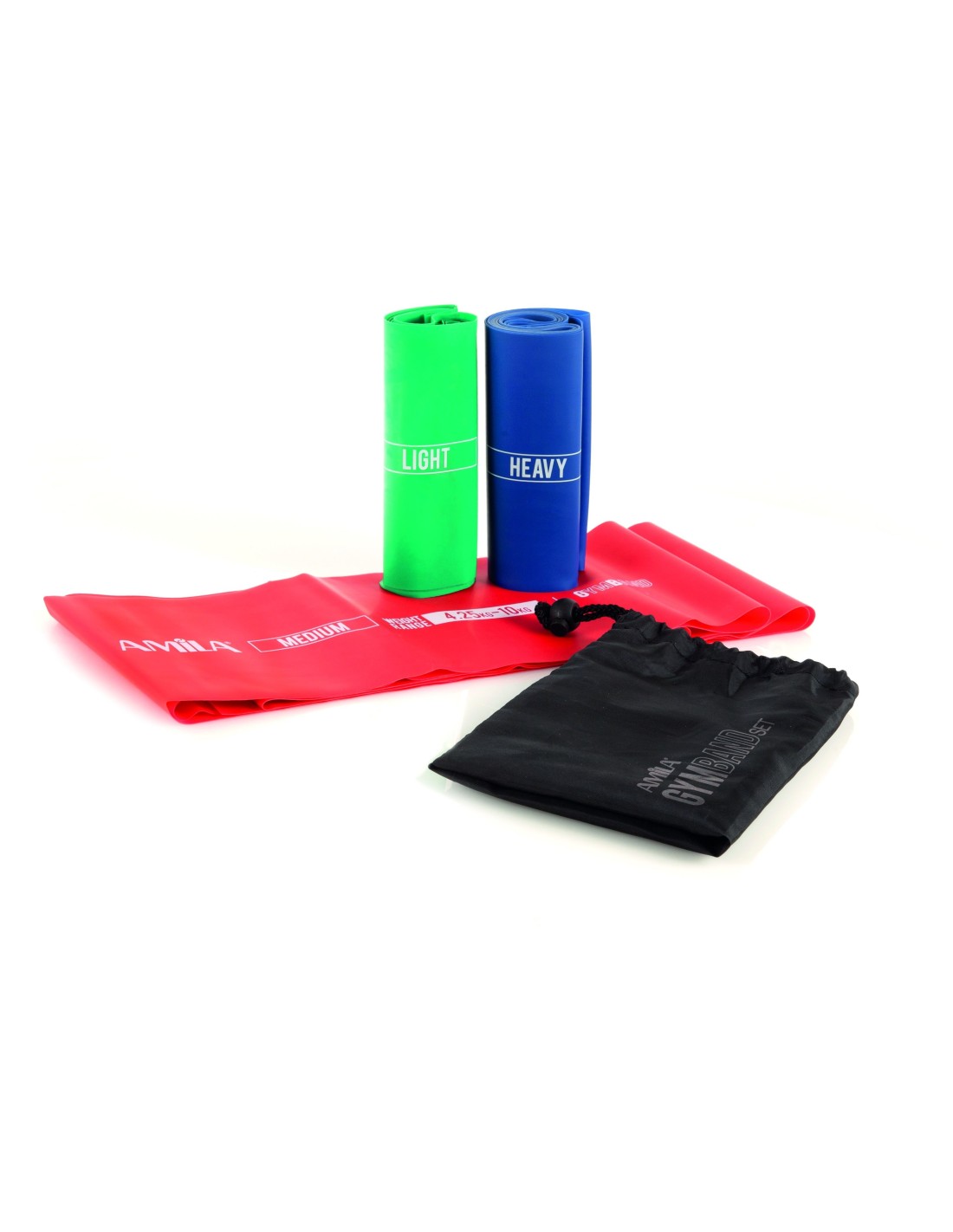 Komplekte 3 vnt. skirtingų pasipriešinimo lygių gumos ir nešiojimo krepšelis