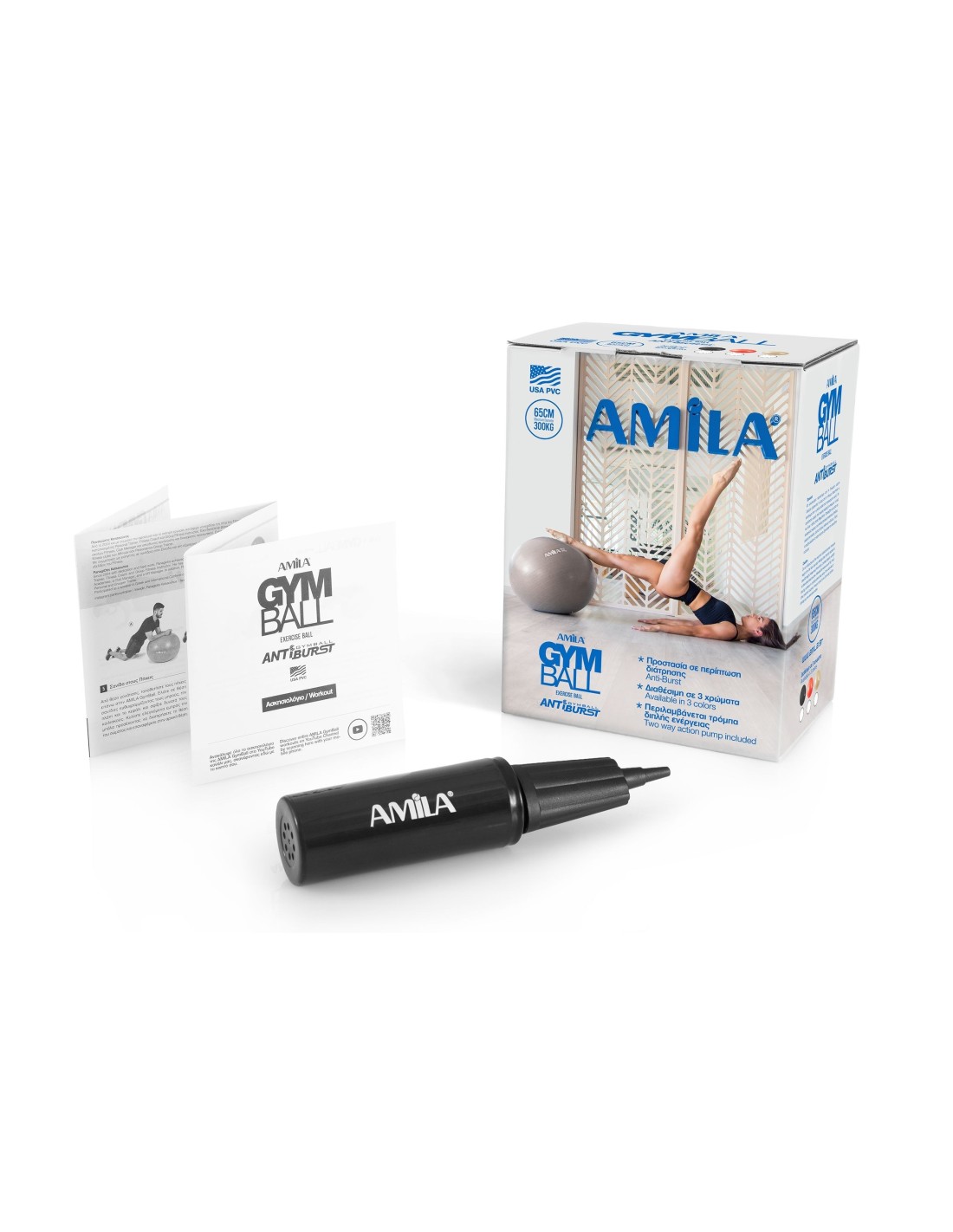AMILA GYMBALL yra pagamintas iš JAV PVC, ypač atsparios ir neslidžios medžiagos