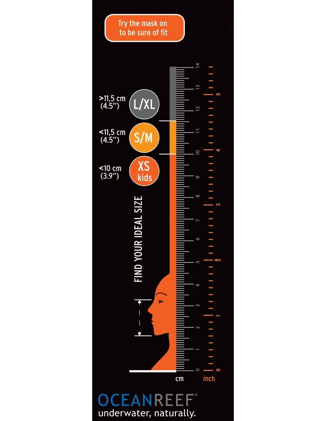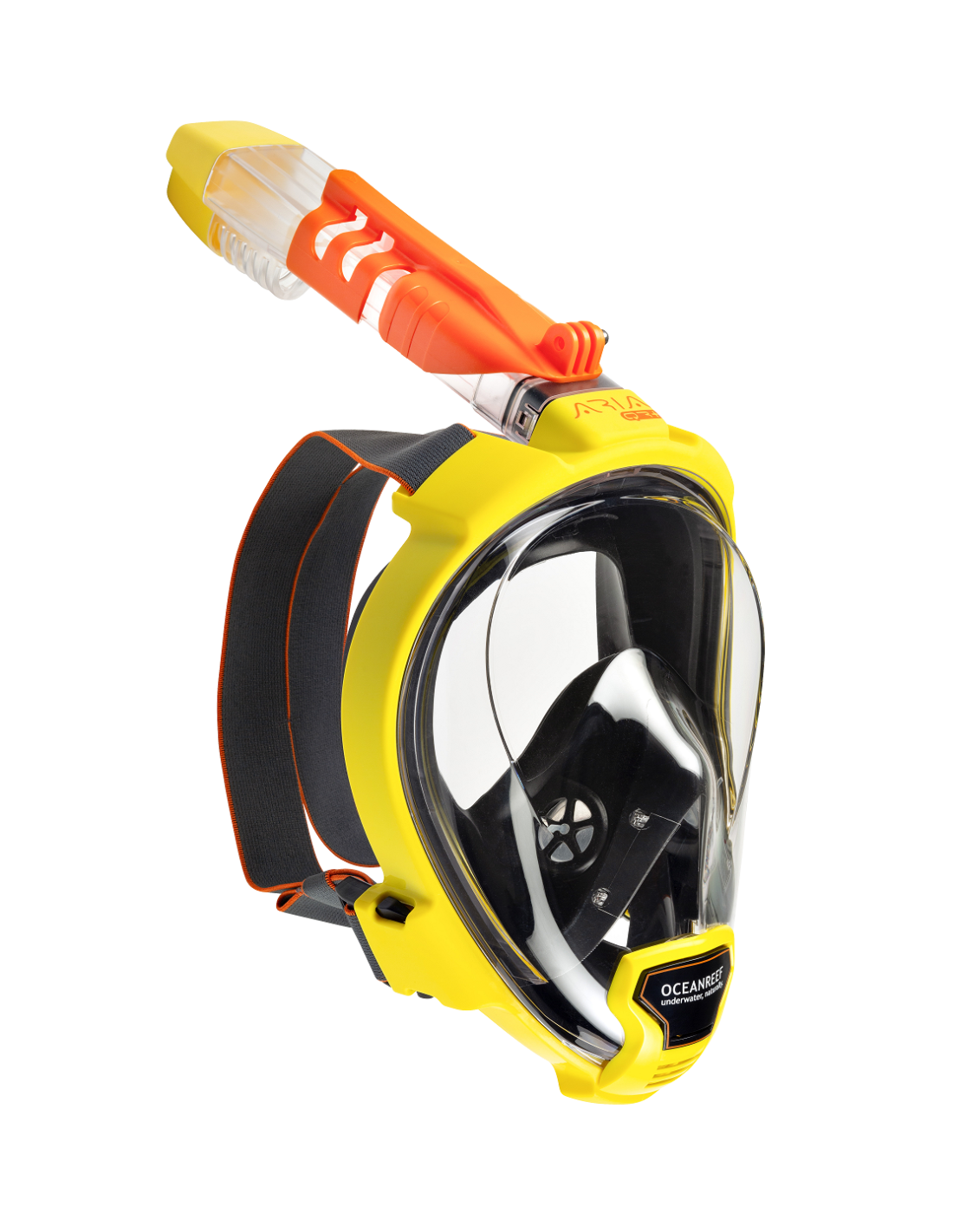 OCEAN REEF pilno veido kaukė turi vienpusius vožtuvus trijose kamerose ir sukurta taip, kad visiškai neleistų susimaišyti panaudotam ir grynam orui.