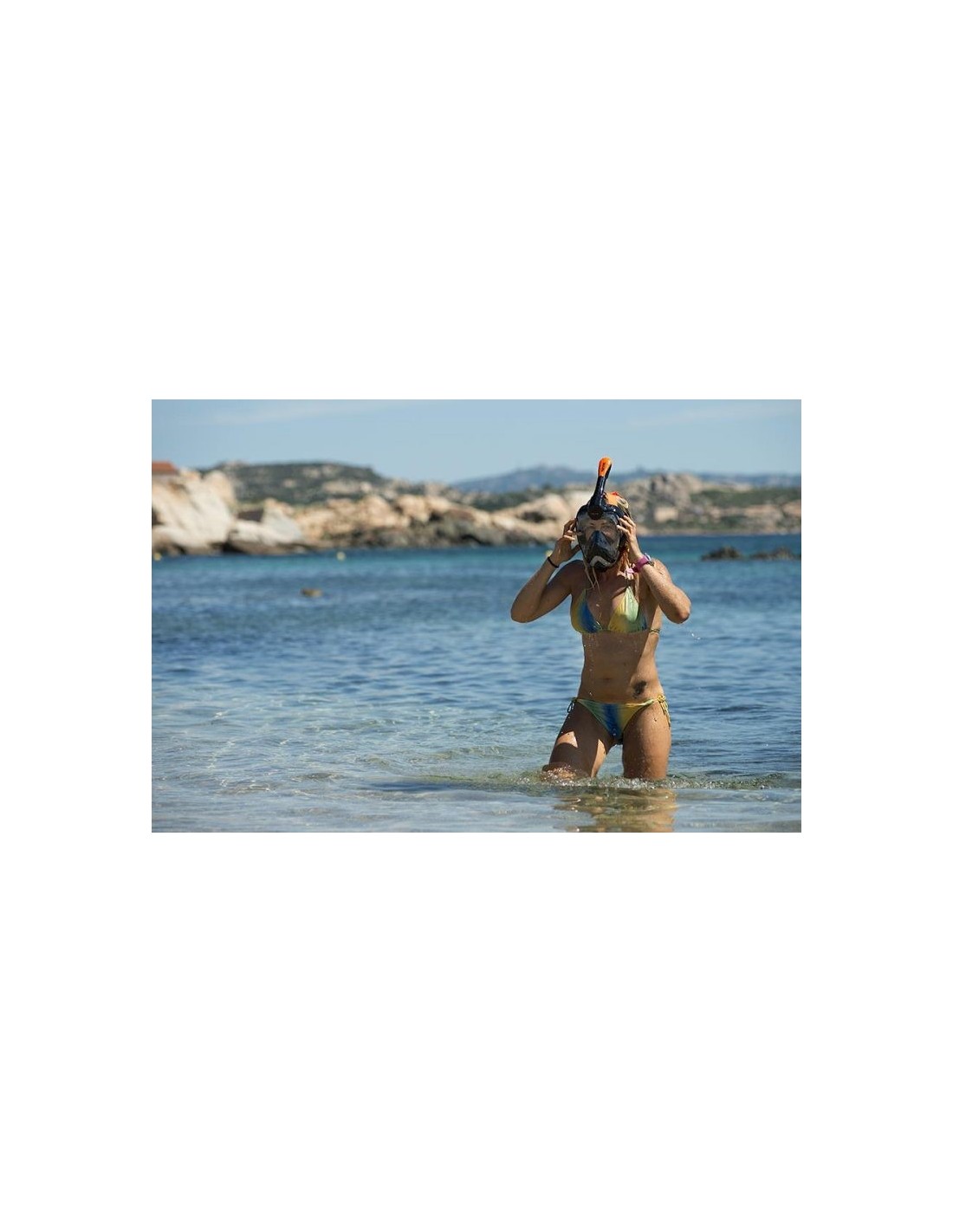 Pilno veido kaukė Seac Sub MAGICA turi minkštą, visą veidą dengiantį sijonėlį, pagamintą iš aukščiausios kokybės novatoriško polimero be ftalatų. Užveržimo dirželiai yra medžiaginiai ir reguliuosi kaukės apačioje. Atstumas nuo smakro iki akių: 10-11.5cm