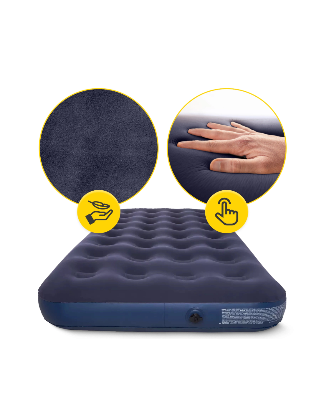 Pripučiamas čiužinys AVENLI buvo sukurtas atsižvelgiant į maksimalų komfortą ir universalumą . Jo matmenys atitinka naudotojų poreikius, o dėl didelio ilgio pamiršite apie išsikišusias kojas . Šio tipo čiužinys yra puikus sprendimas, kai svečiams nepakanka miegojimo vietos. Keliaujant automobiliu ar traukiniu, šis čiužinys taps praktiška ir patikima jūsų kelioninės įrangos dalimi . Dėl plataus vožtuvo jį pripūsti greita ir paprasta, o pridedama pompa su patogia rankena tai palengvina.