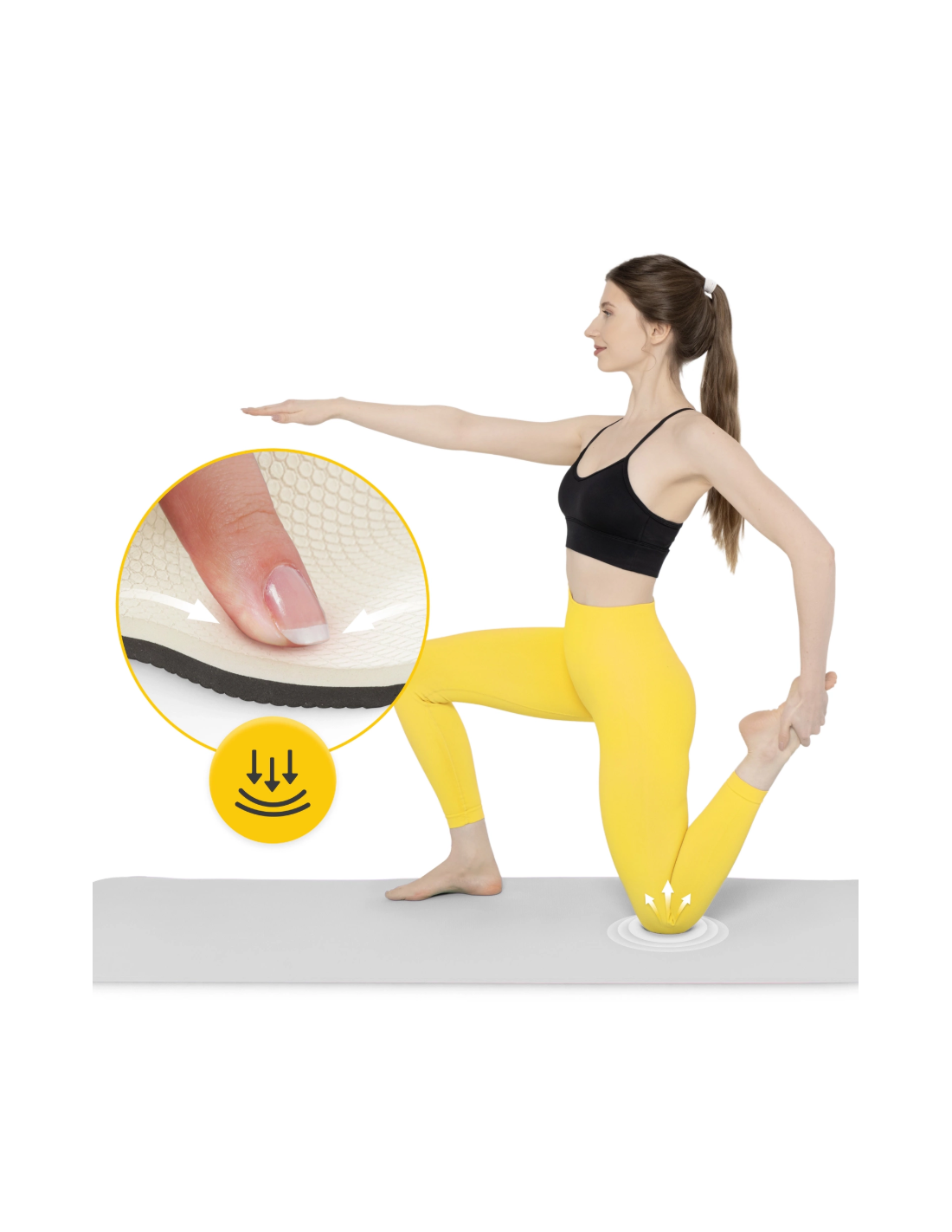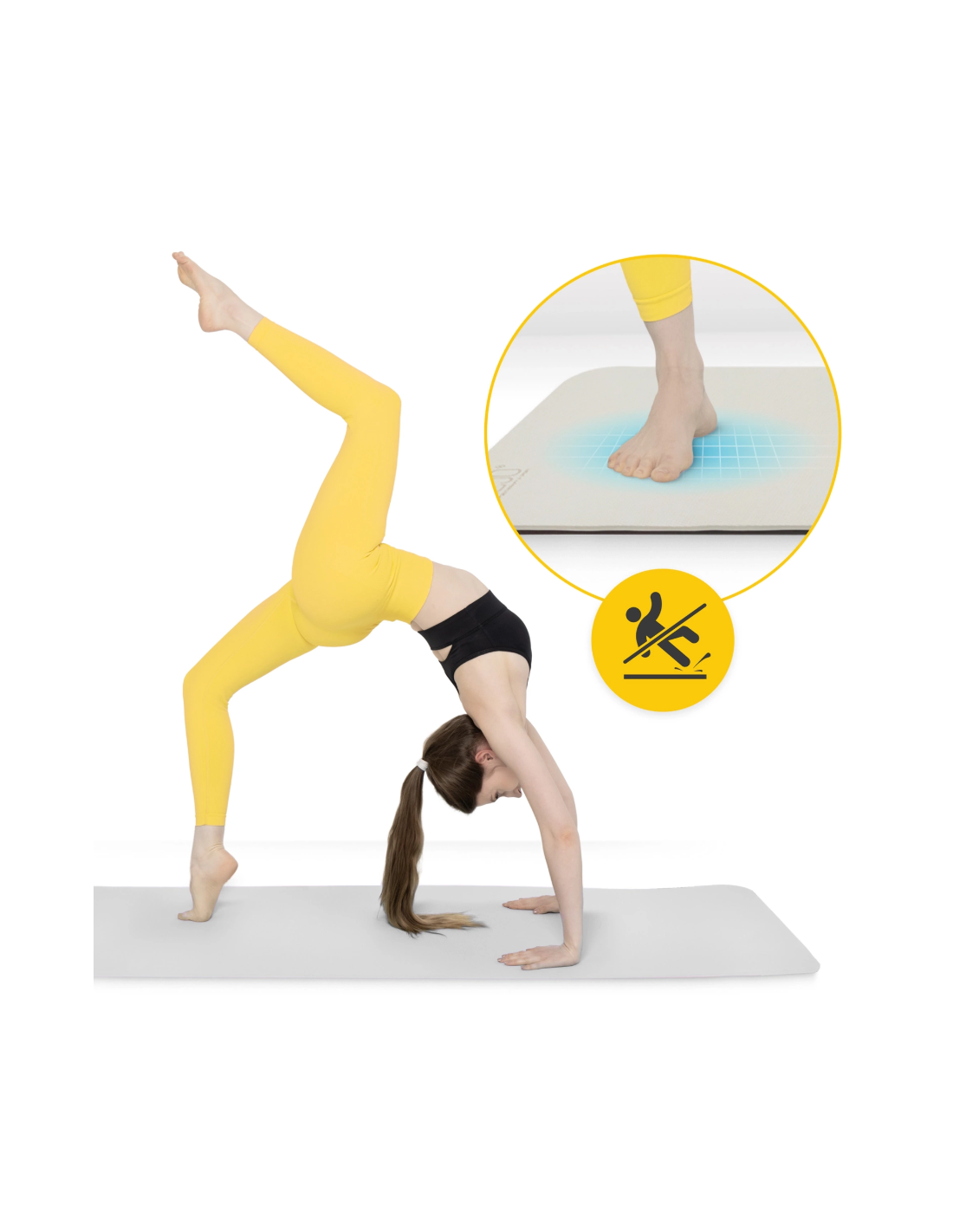 ✅ Kilimėlio paviršius neslysta, todėl užtikrinamas puikus stabilumas mankštos metu.