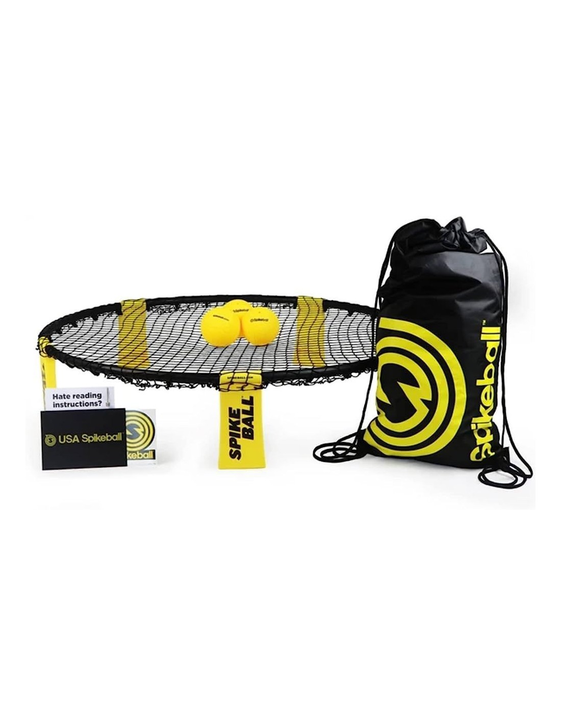 3 standartiniai Spikeball kamuoliukai (apie 8,9 cm) – tobulam atšokimui ir smūgių valdymui;