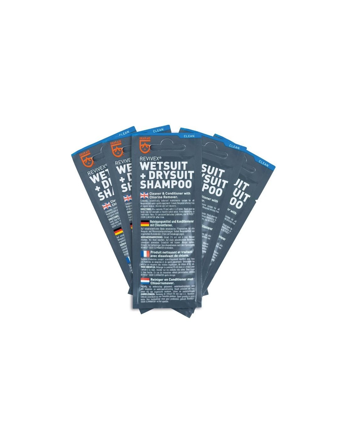 Šampūnas-kondicionierius Revivex su aktyvia medžiaga chlorui pašalinti, prailgina neopreninių kostiumų, pirštinių, kojinių tarnavimo laiką nepažeisdžiant pačio neopreno.Laikui bėgant, chloro ir druskos pažeidimai gali pabloginti neopreno savybes. Nuplaukite organinius likučius, tokius kaip dumbliai,bakterijos,druska naudodami ši valiklį.