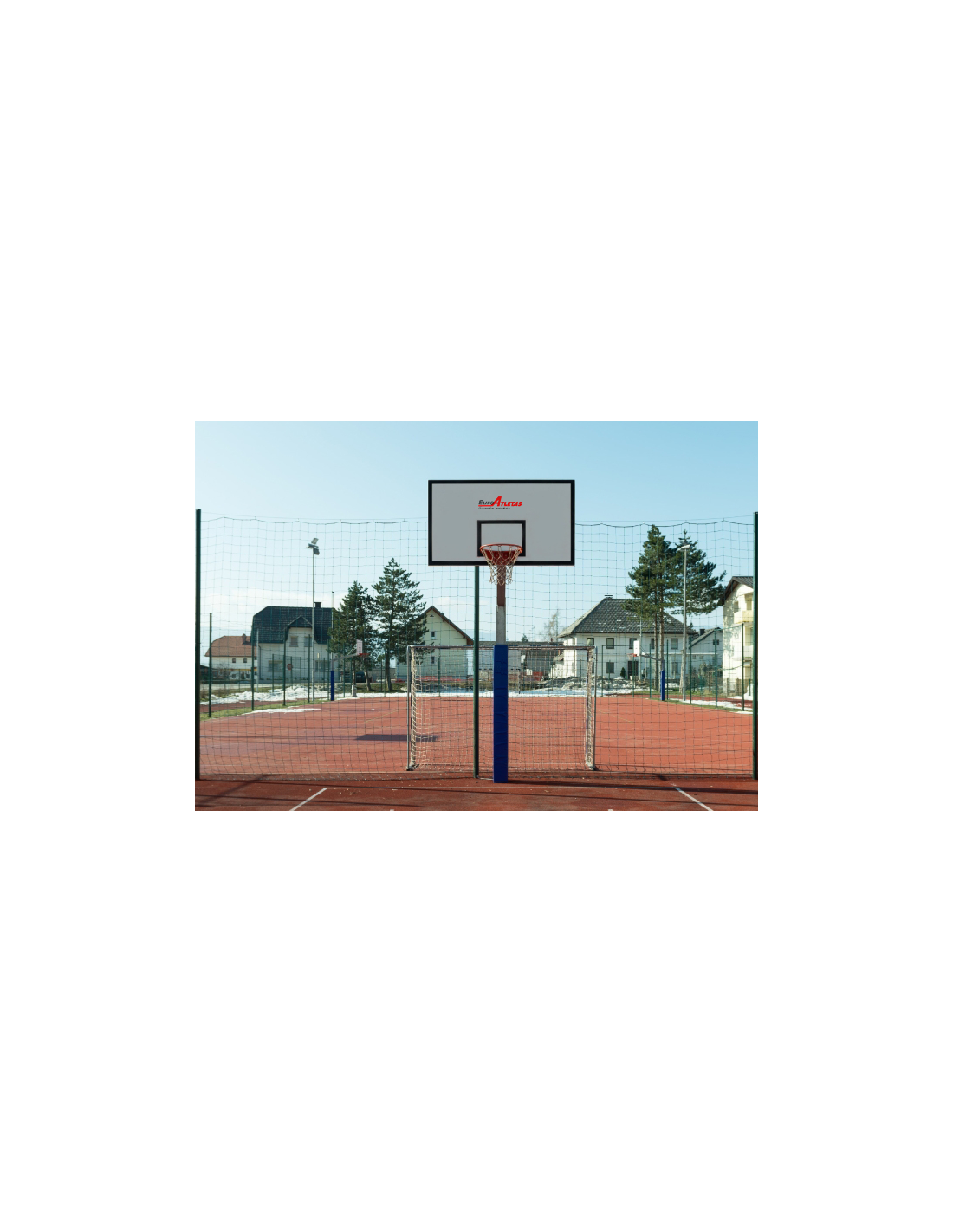 Kamuolio gaudyklė pagaminta iš 3 vnt. (5m aukščio) cinkuotų 60mm apvalaus plieno profilio stulpų (papildomai gali būti dar dažyti milteliniu būdu). Tinklas: polietilenas 4mm, akis 10x10cm