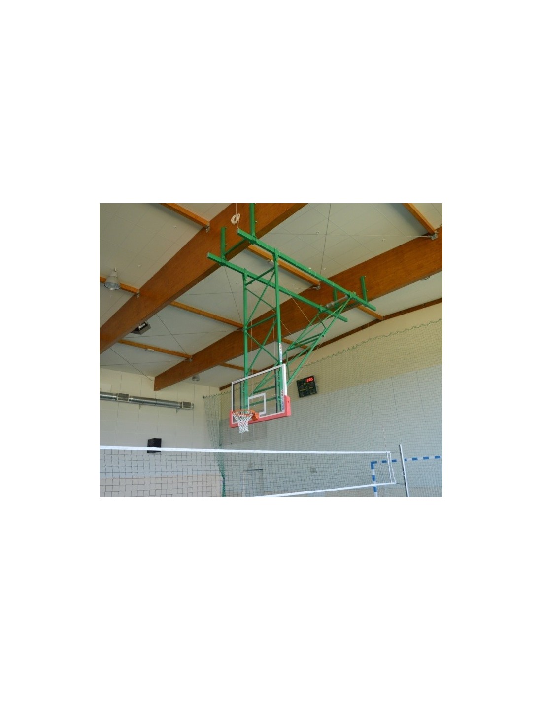Prie lubų tvirtinama krepšinio konstrukcija