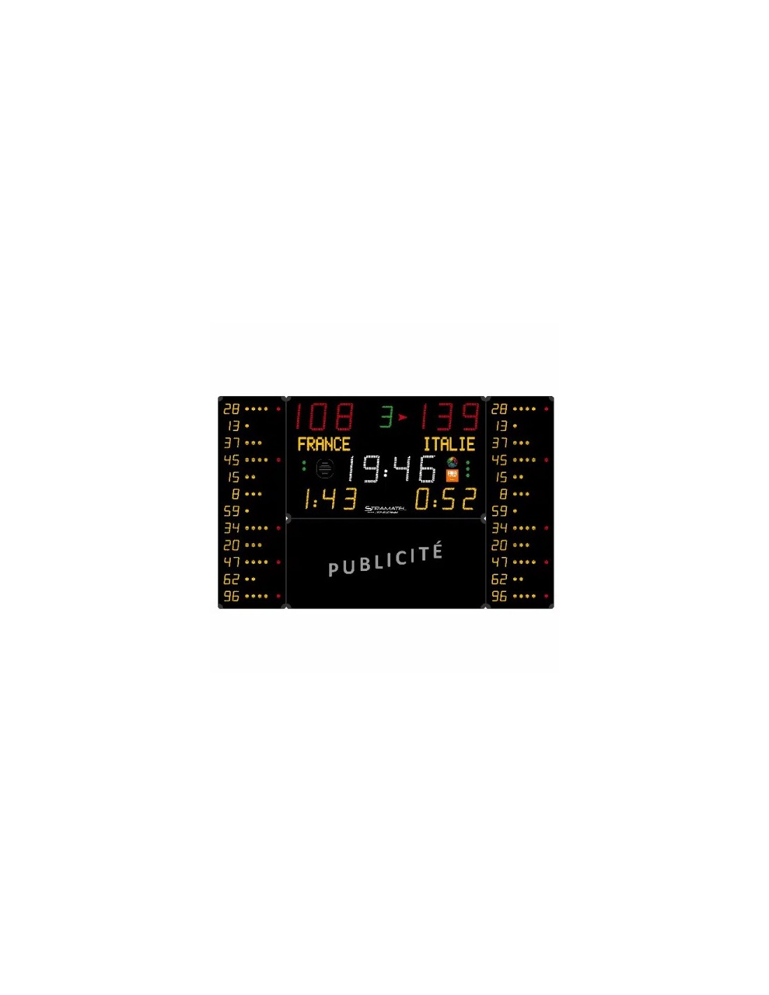 452 MB 7120-2 – belaidė daugiatikslė sporto švieslentė, rodanti rezultatus, laiką, periodus ir papildomą informaciją iki 110 m atstumu.