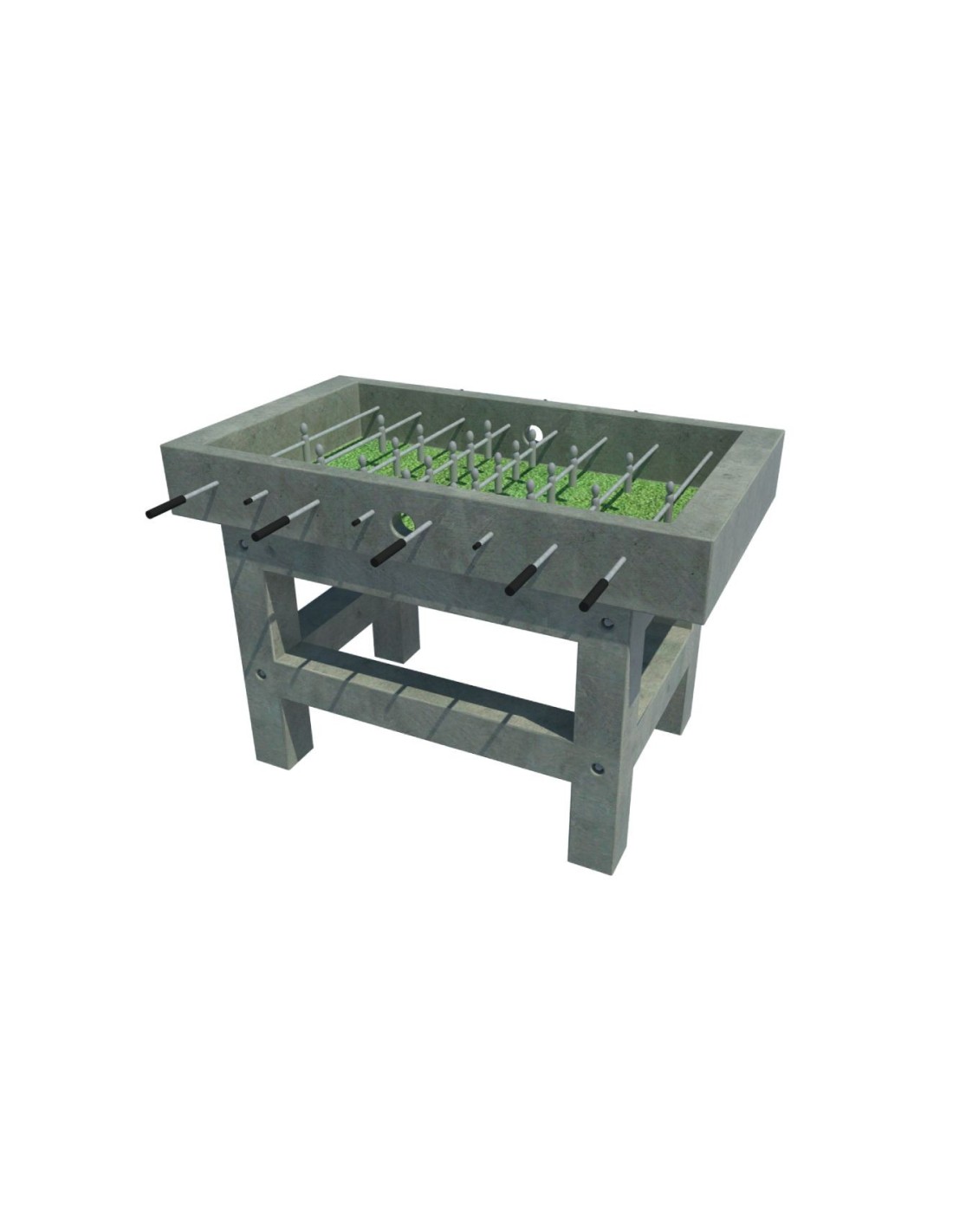 Betoninis lauko stalo futbolo stalas iš vibruoto betono, sutvirtintas 8 gabaritų viela. Apdailos dangos ir naudojamos medžiagos užtikrina atsparumą oro sąlygoms, o tai suteikia neribotas žaidimo galimybes.
