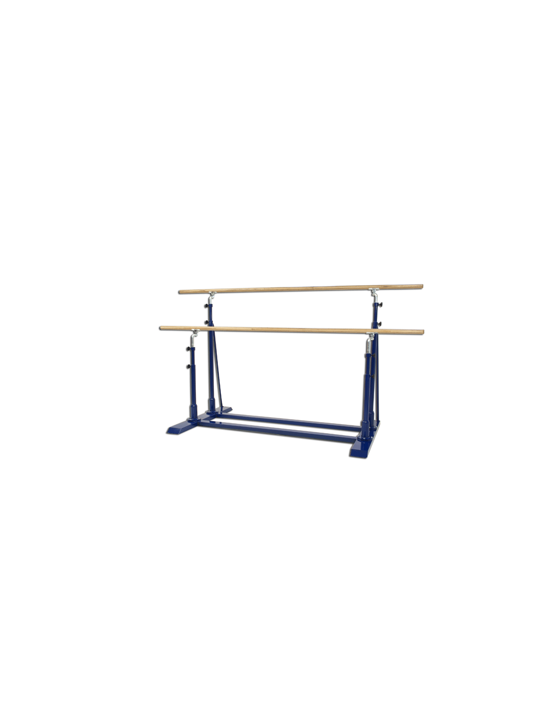 Moteriškos asimetrinės lygiagretės, pagamintos iš plieno, pasunkintas pagrindas, reguliuojamas teleskopinis aukštis ir plotis. Skersiniai pagaminti iš klijuotos medienos - ilgis 350m