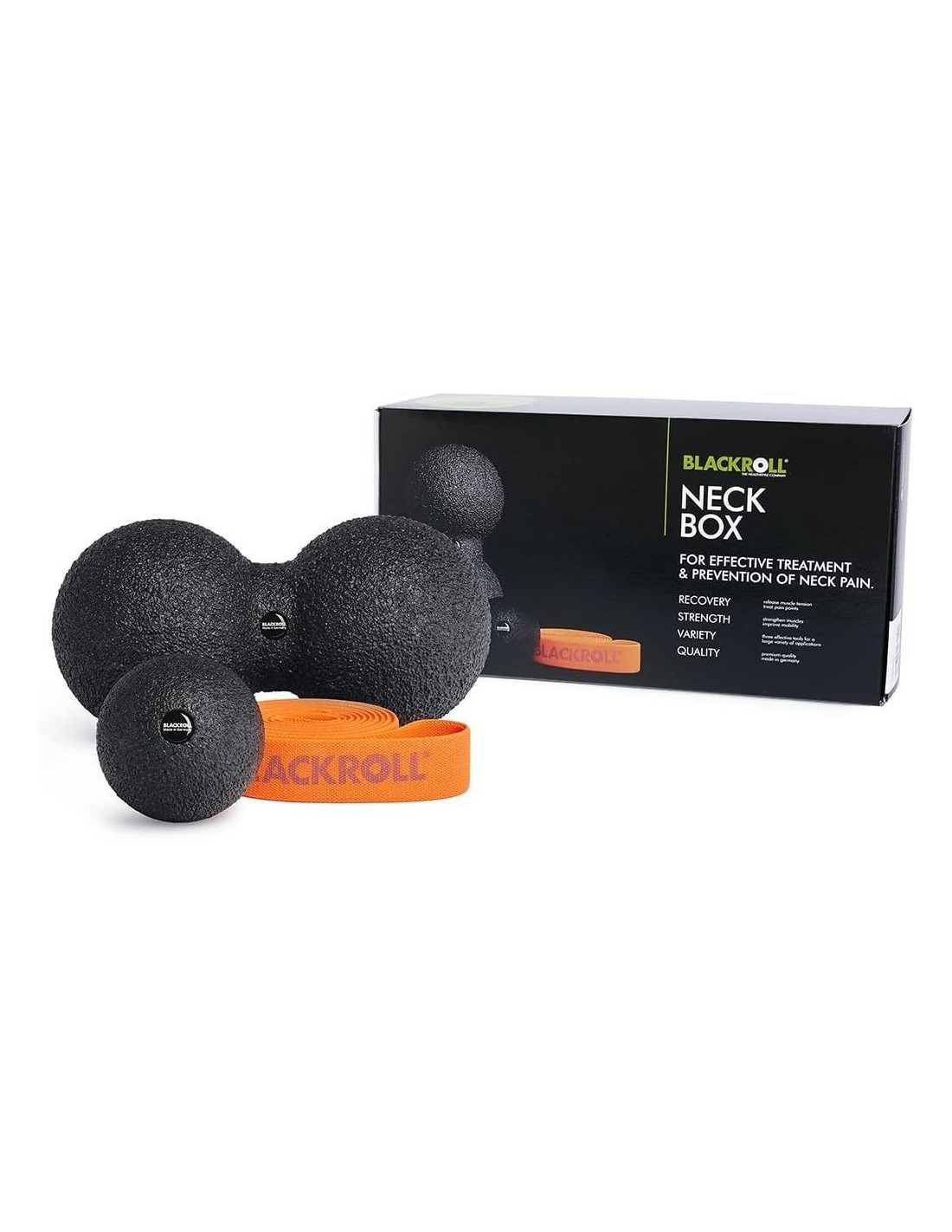 Blackroll Neck Box yra viskas viename sprendimas, sudarytas iš 3 Blackroll produktų, kurie padeda gydyti ir užkirsti kelią kaklo skausmams. Su šiuo rinkiniu galite regeneruoti, mobilizuoti ir sustiprinti kaklą.