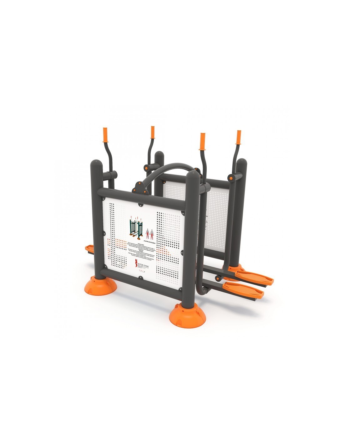 Šis treniruoklis yra su dideliu informaciniu stendu.