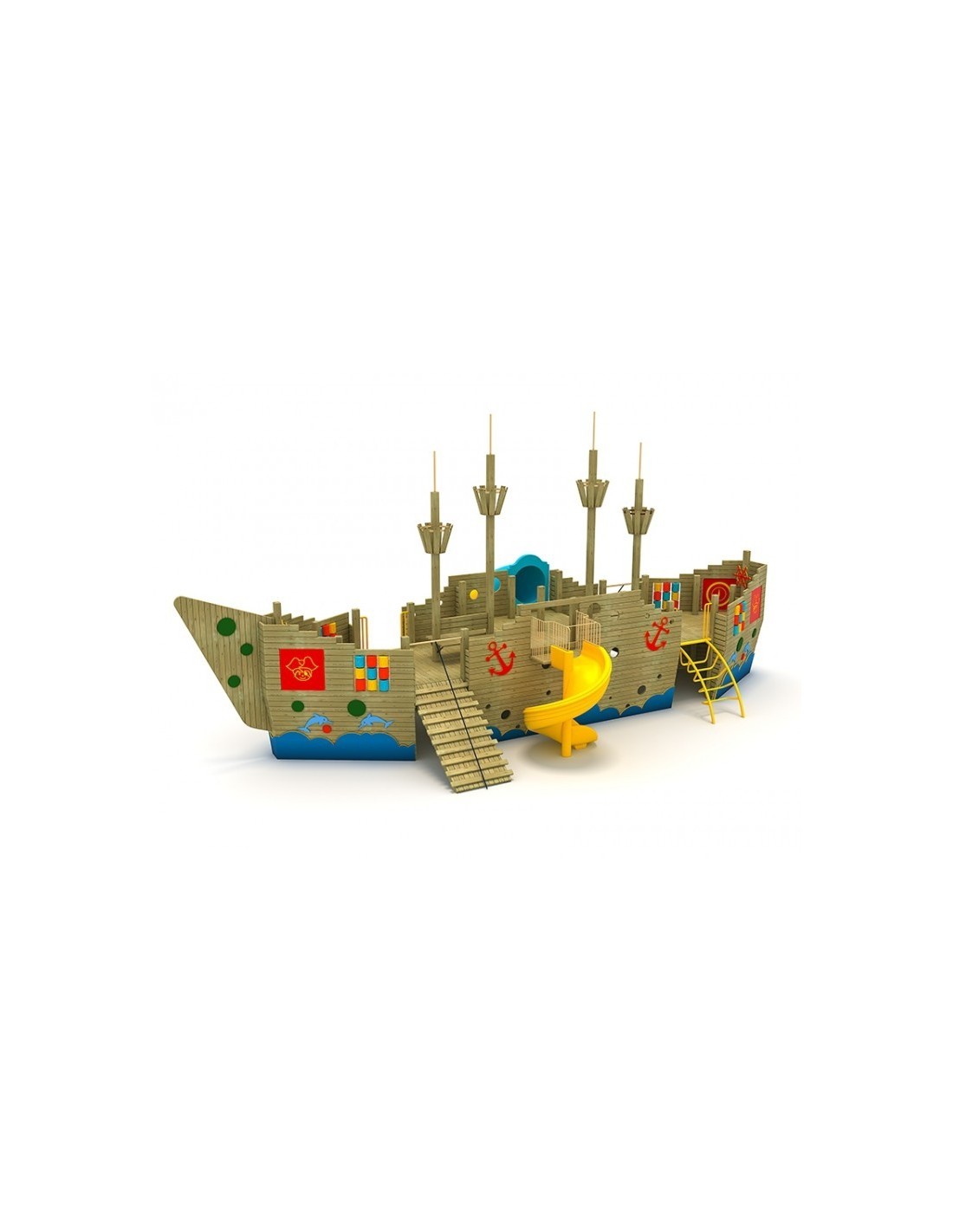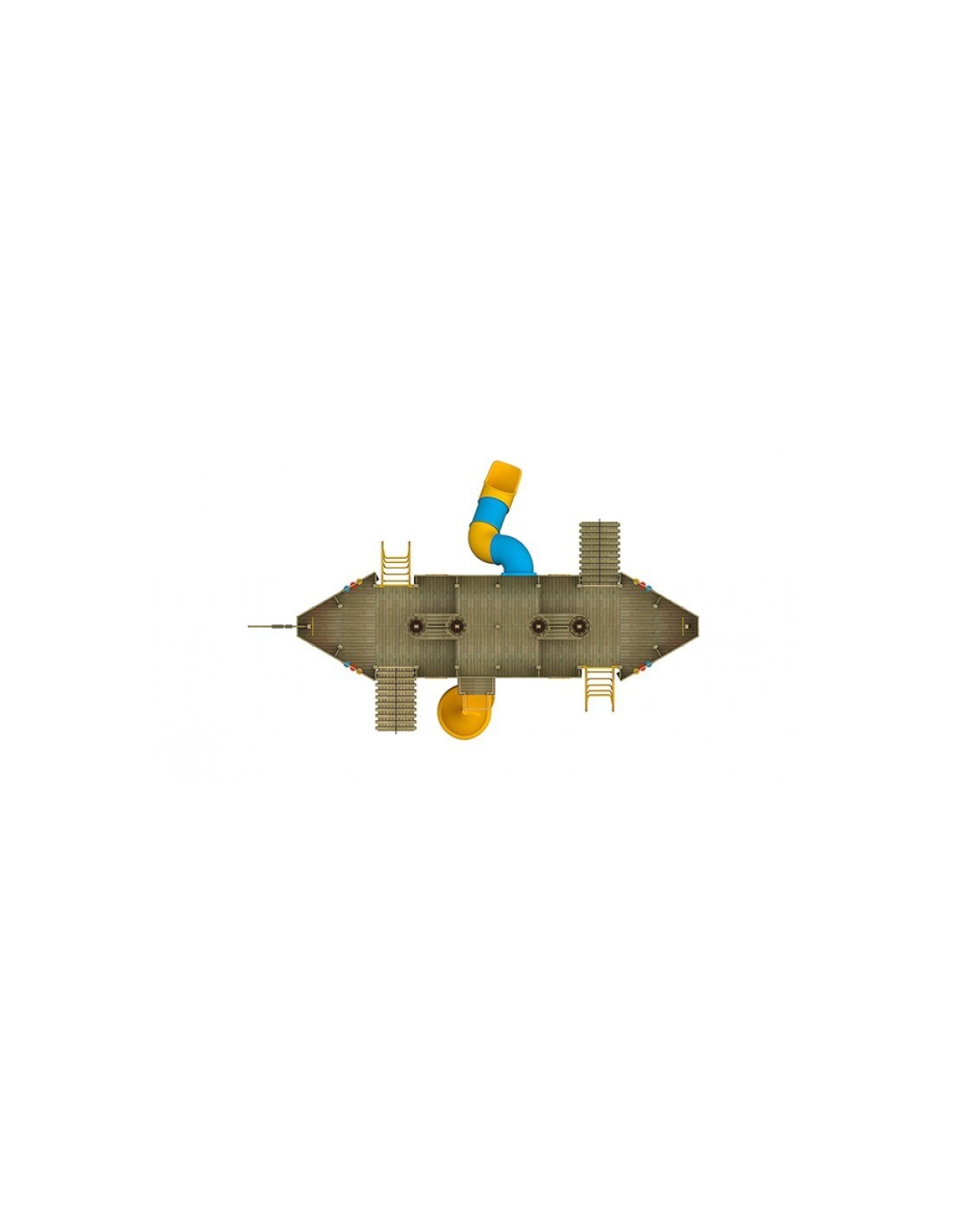 Medinėms žaidimų aikštelių įrangoms naudojamos medinės, polietileno, HDPE, virvės ir metalinės medžiagos. Medinės dalys yra pagamintos iš impregnuotos 1-os klasės medienos. Metalinės dalys yra cinkuotos ir padengtos elektrostatiniais milteliniais dažais, kad medžiaga būtų atspari oro sąlygoms. Polietileno gabalėliai gaminami iš spalvotų, antistatinių, nekenksmingų žaliavų.