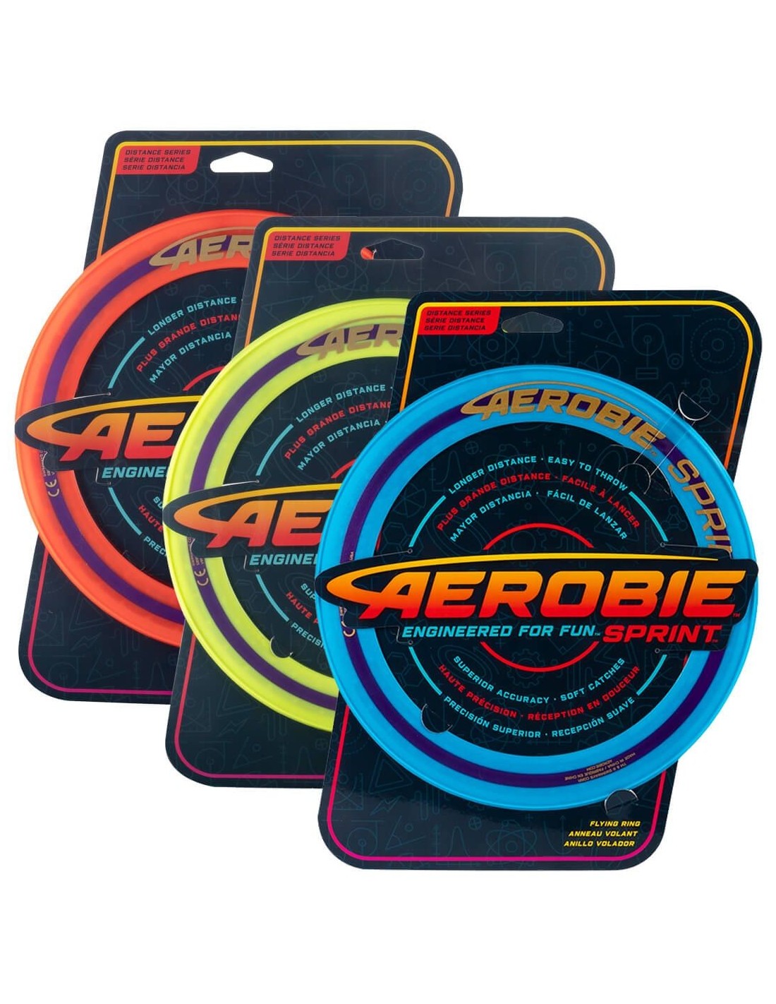 „Aerobie Sprint Ring“ turi kompaktišką, ploną dizainą, leidžiantį skraidyti ilgesniais atstumais ir gali nuskrieti dvigubai daugiau nei dauguma įprastų skraidančių diskų! Dėl mažo dydžio galite įsidėti jį į kuprinę ir smagiai praleisti laiką! Žaisk kieme, parke ar mokyklos žaidimų aikštelėse! Atviras centras leidžia kiekvienam žaidėjui pritaikyti savo metimo ir gaudymo stilių – suimkite už krašto ranka arba naudokite centrą, kad gaudytumėte jį ranka ar koja.