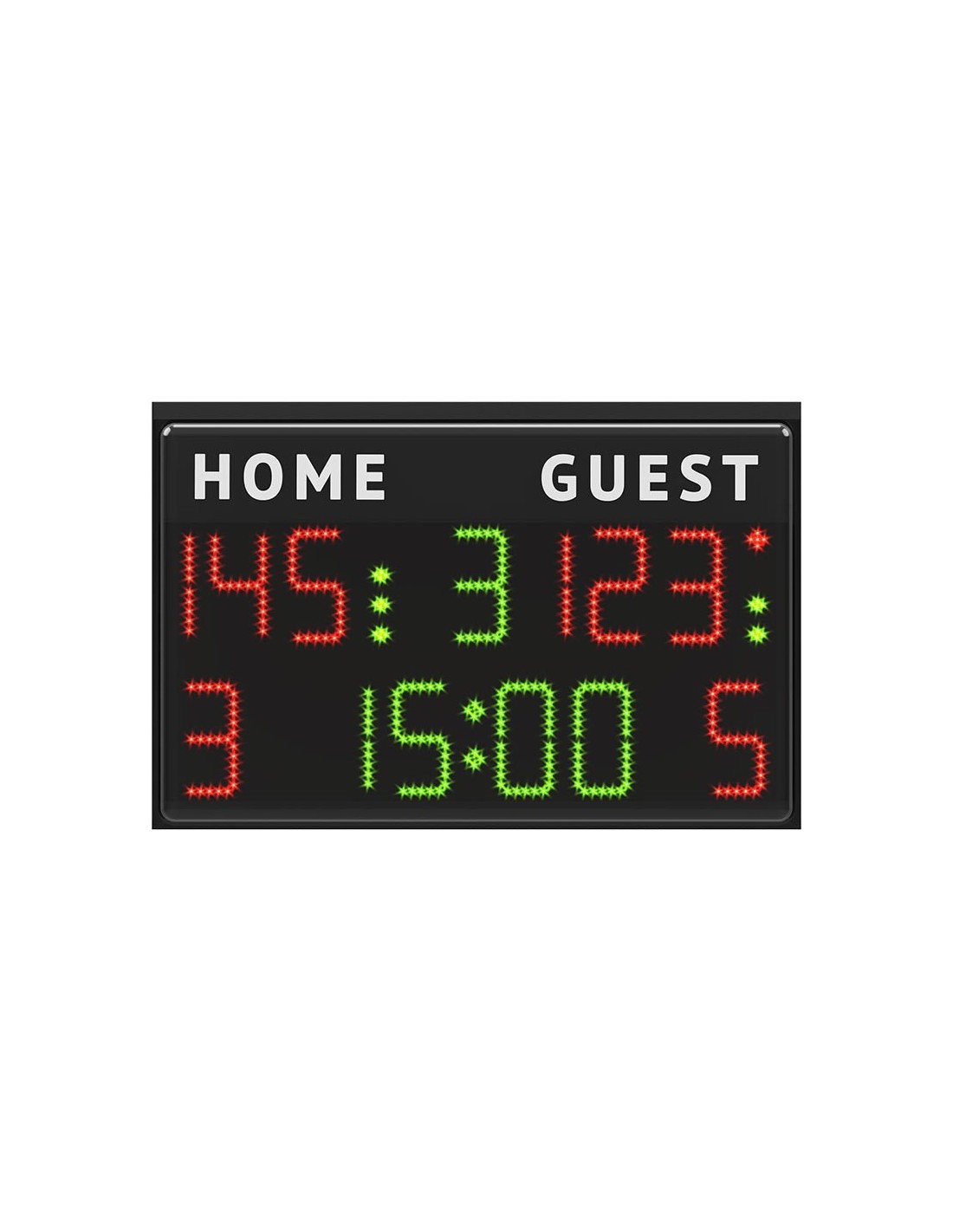 Laikamatis: nuo 00:00 iki 99:59. Skaičiuoja į priekį bei atbuline tvarka, rodo laiką, 1/10 sekundės atvaizdavimas paskutinėje rungtynių minutėje (naudojama vandensvydyje, krepšinyje ir pan.).