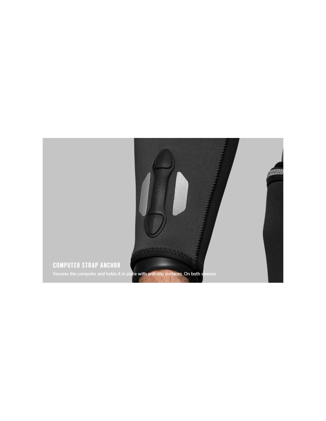 Kompiuterio dirželio inkaras - užfiksuoja kompiuterį ir laiko jį neslystančiais paviršiais. Ant kairės ir dešinės rankos.