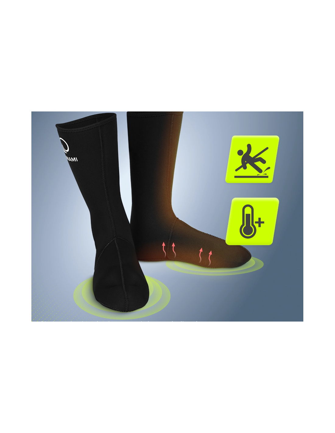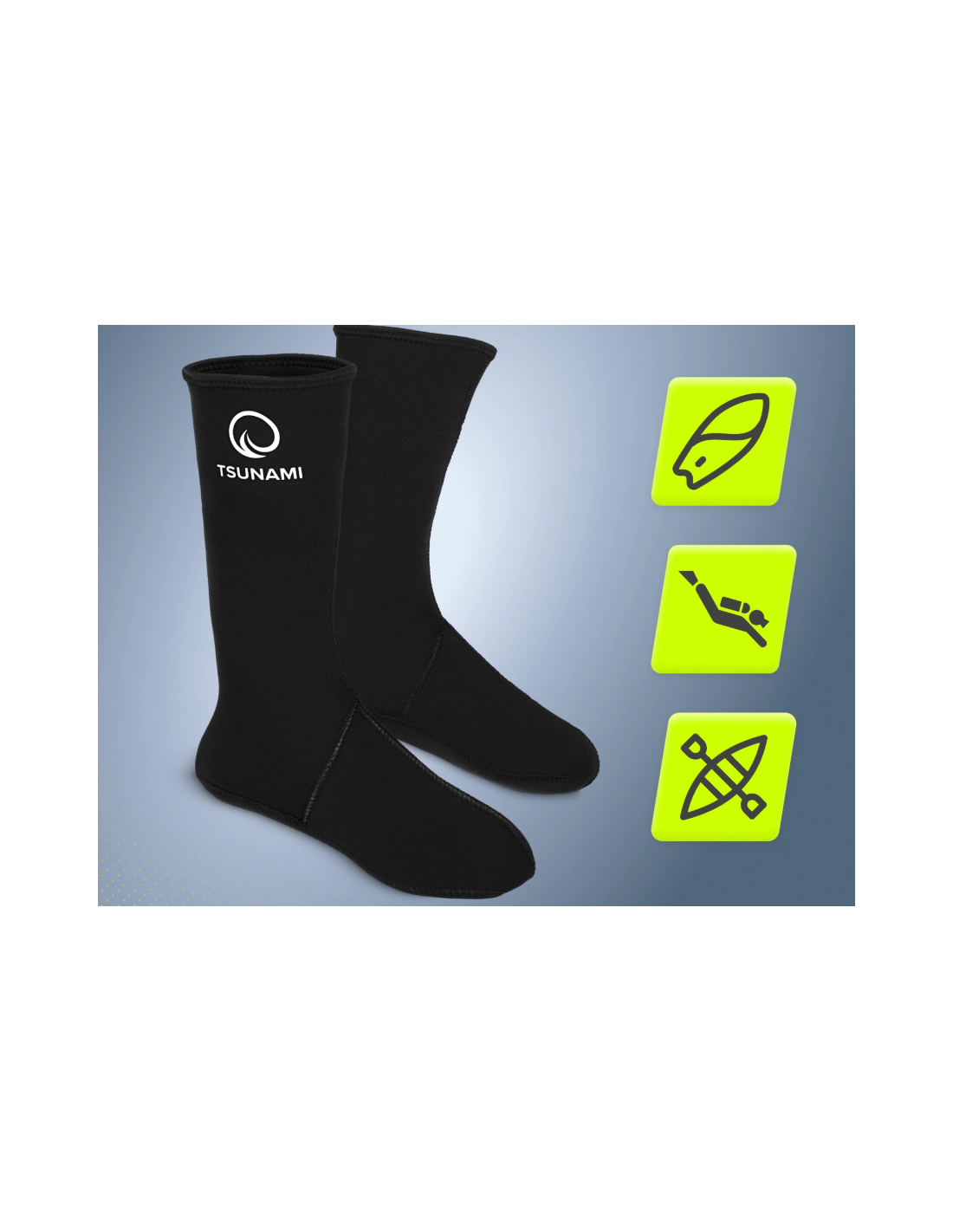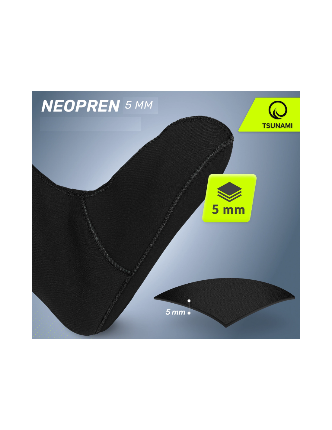 Ar tenka atsisakyti mėgstamų vandens sporto šakų, kai temperatūra nukrenta žemiau nulio? Žinoma, kad ne! Žiemos plaukimas, nardymas ar plaukiojimas baidarėmis gali suteikti nepamirštamų įspūdžių. Būklė? Tam reikia tinkamai pasiruošti. TSUNAMI 5 mm neopreno kojinės yra drabužių dalis, kuri suteiks jums puikią šilumos izoliaciją – nesvarbu, kokioms vandens pramogoms nuspręsite užsiimti žiemą. Investuokite į kokybę ir mėgaukitės savo aistra be apribojimų!