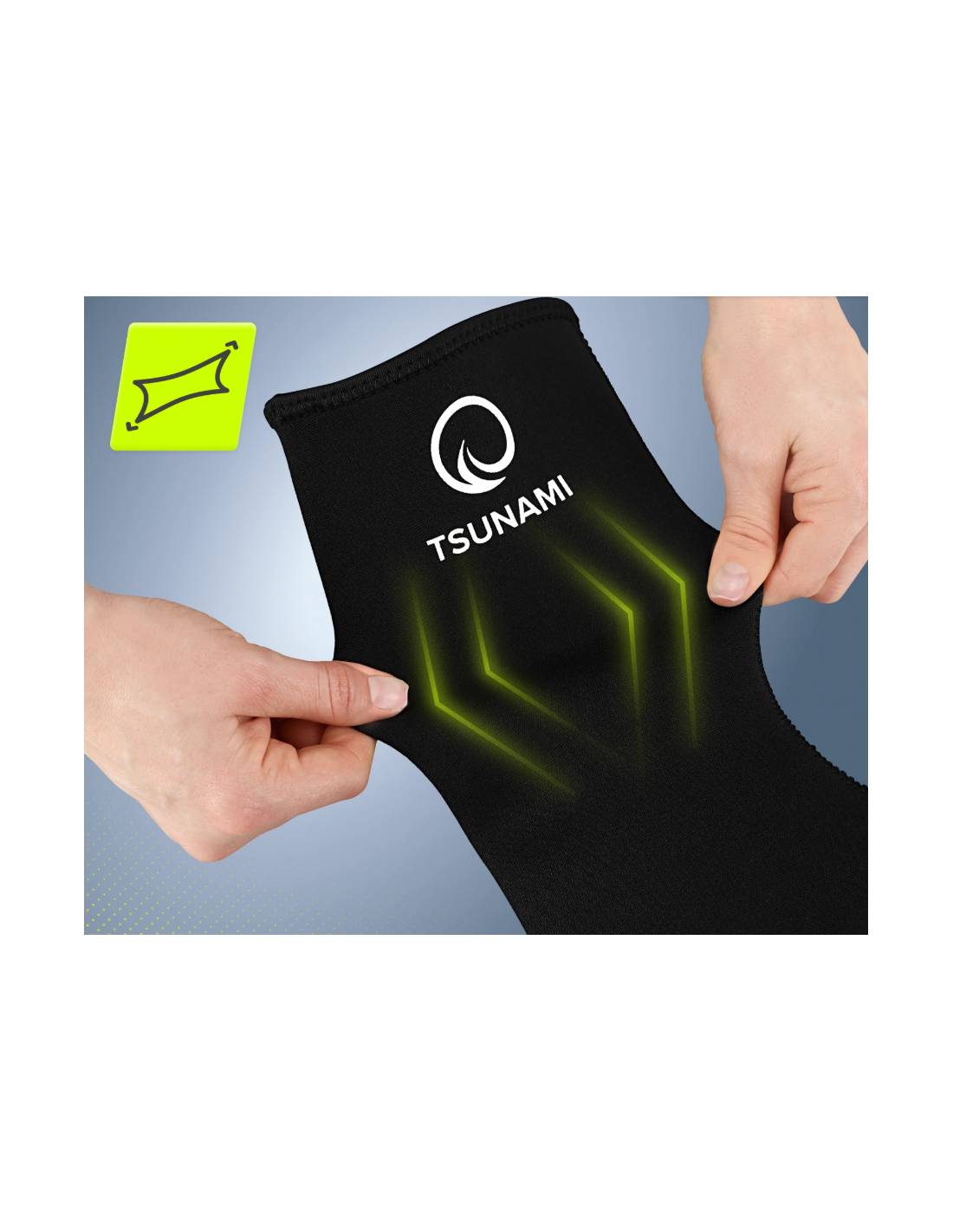 TSUNAMI neopreno kojinės yra esminis kiekvieno žiemos vandens sporto entuziasto garderobo elementas . Kad jos atliktų savo funkciją, turi būti tinkamai parinktos pagal dydį – skirtingai nei įprastos, turėtų būti kuo labiau prigludusios. Tos, kurios yra per laisvos, gali neužtikrinti pakankamai izoliacijos, tačiau tos, kurios yra per ankštos, riboja kraujotaką, todėl galite jausti šaltį arba sustingimą. Puikiai priderintos kojinės turėtų tikti jūsų pėdai kaip antroji oda . Renkantis tinkamą dydį, nepamirškite, kad neoprenas šiek tiek plečiasi veikiamas drėgmės.