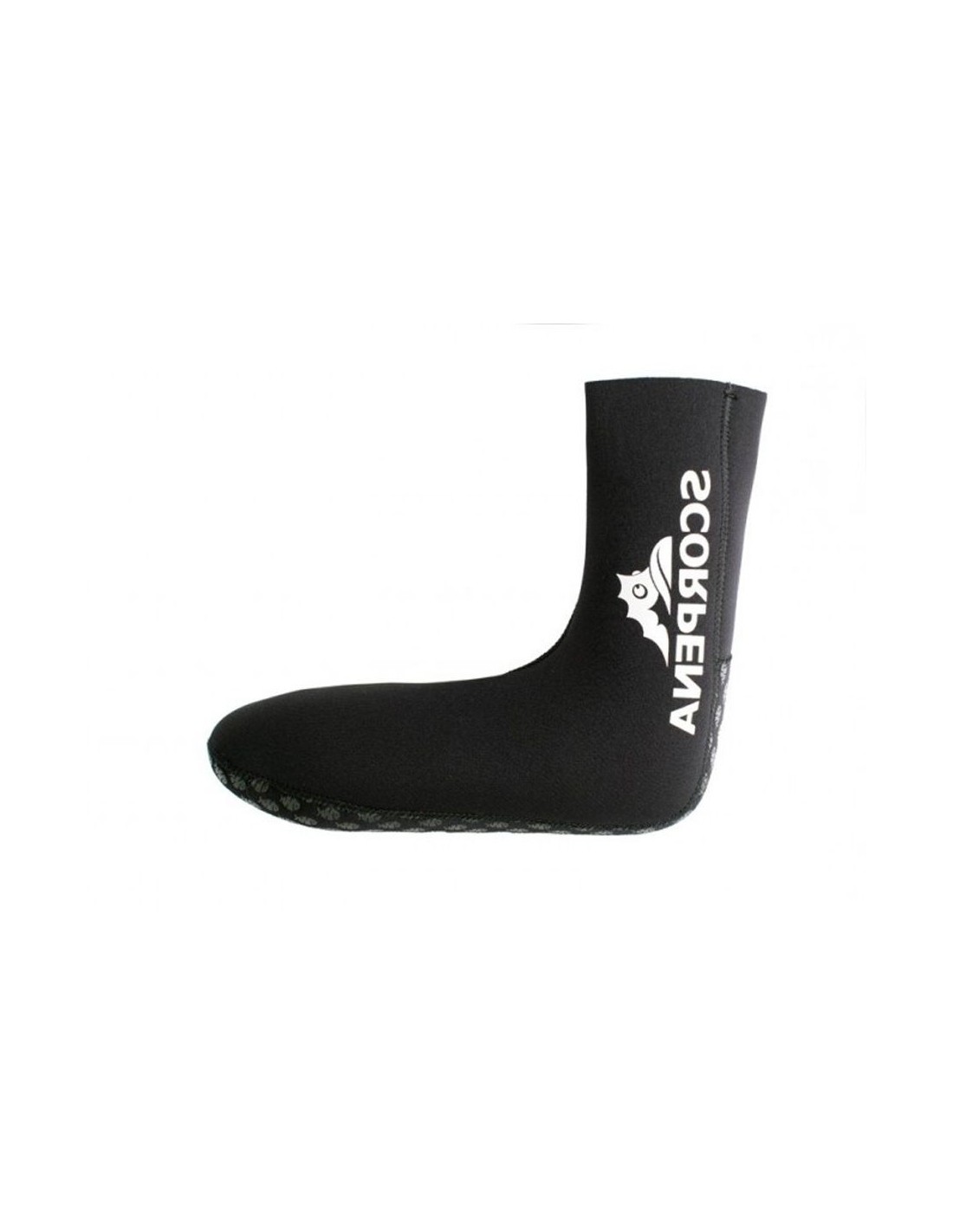 Kojinės „Scorpena D“ pagamintos iš itin patvaraus, minkšto ir ekologiško „Sheico“ neopreno, išorėje padengto nailonu, o viduje – atviromis poromis.