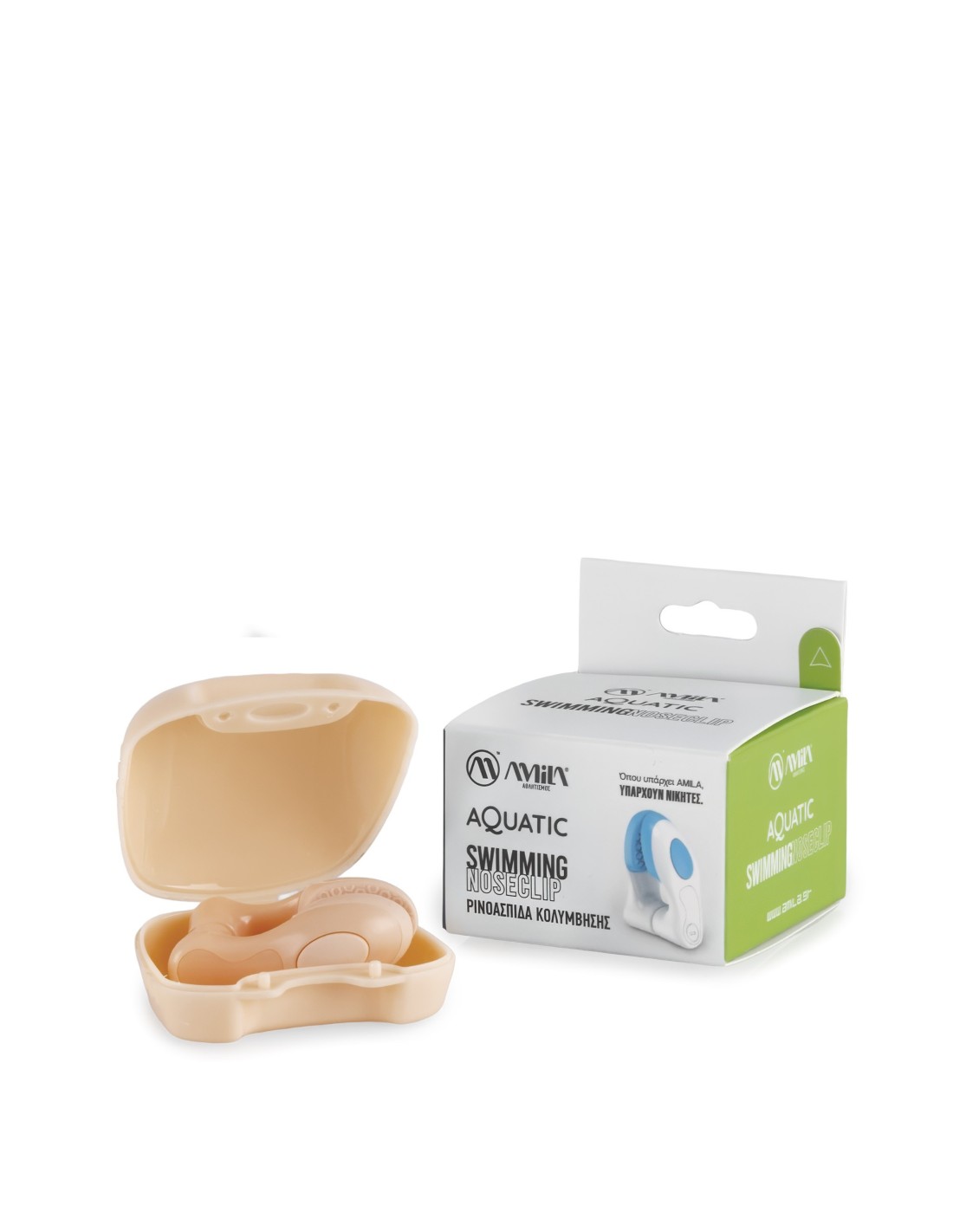 AMILA Aquatic reguliuojamas nosies spaustukas laiko nosį uždarytą ir neleidžia vandeniui patekti į vidų plaukiant.