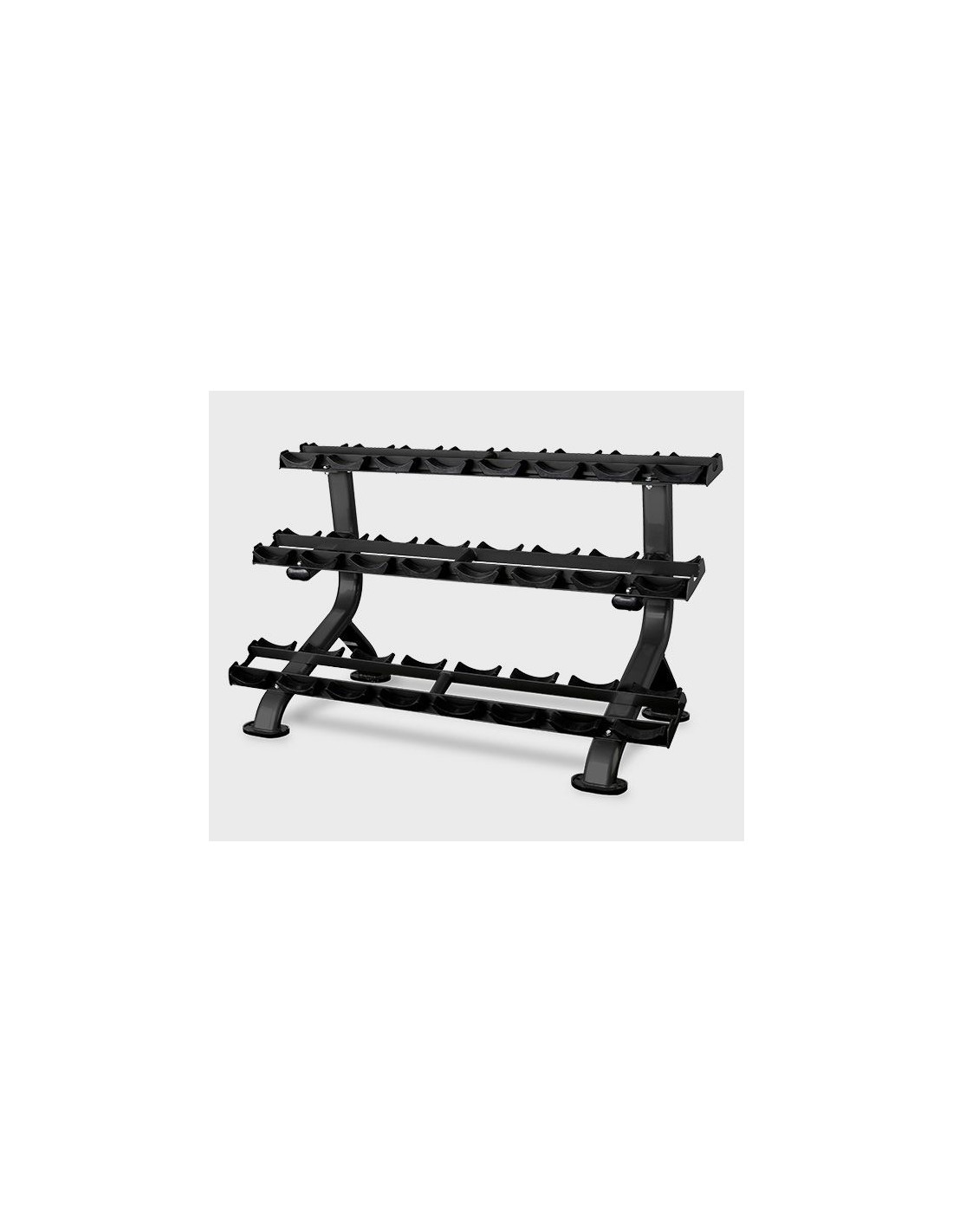 Hantelių stovas L875BB idealiai tinka tvarkingai laikyti iki 12 porų hantelių sporto salės laisvo svorio zonoje.