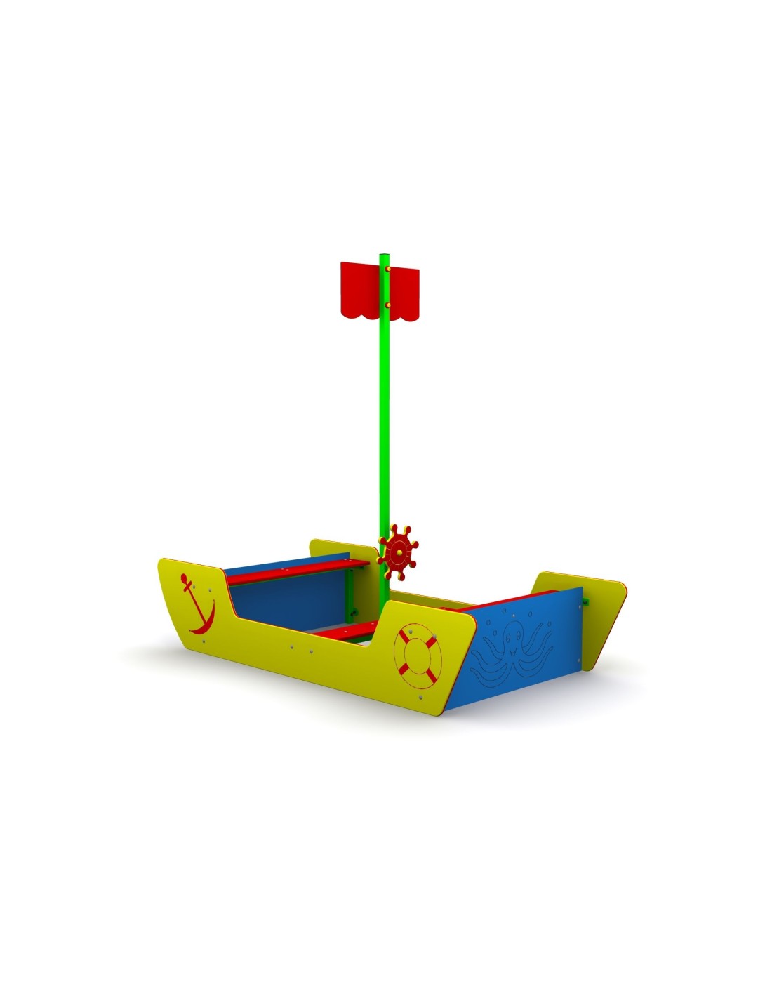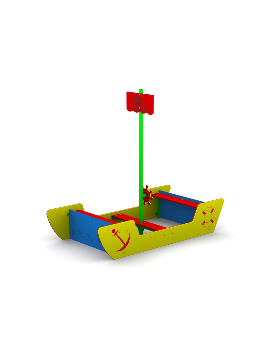 - Łódź Pirata występuje jako osobne urządzenie zabawowe lub też wypełnione piaskiem spełnia rolę piaskownicy,