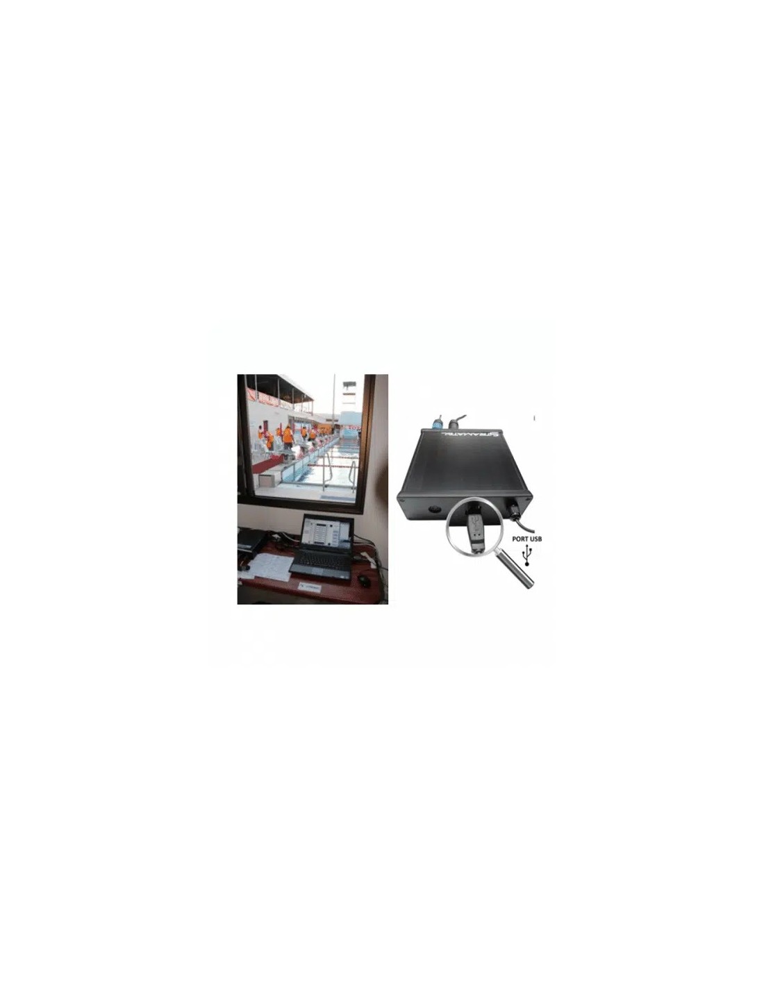 Aquasport V USB – plaukimo varžybų chronometravimo sistema, skirta tiksliam laikui matuoti baseino treniruotėse ir varžybose. Sistema jungia LED laikmatį su USB jungtimi kompiuteriui, leidžia sinchronizuoti laikus su varžybų programa ir saugoti rezultatus. Komplekte yra valdymo pultelis ir USB kabelis duomenų perdavimui į kompiuterį.