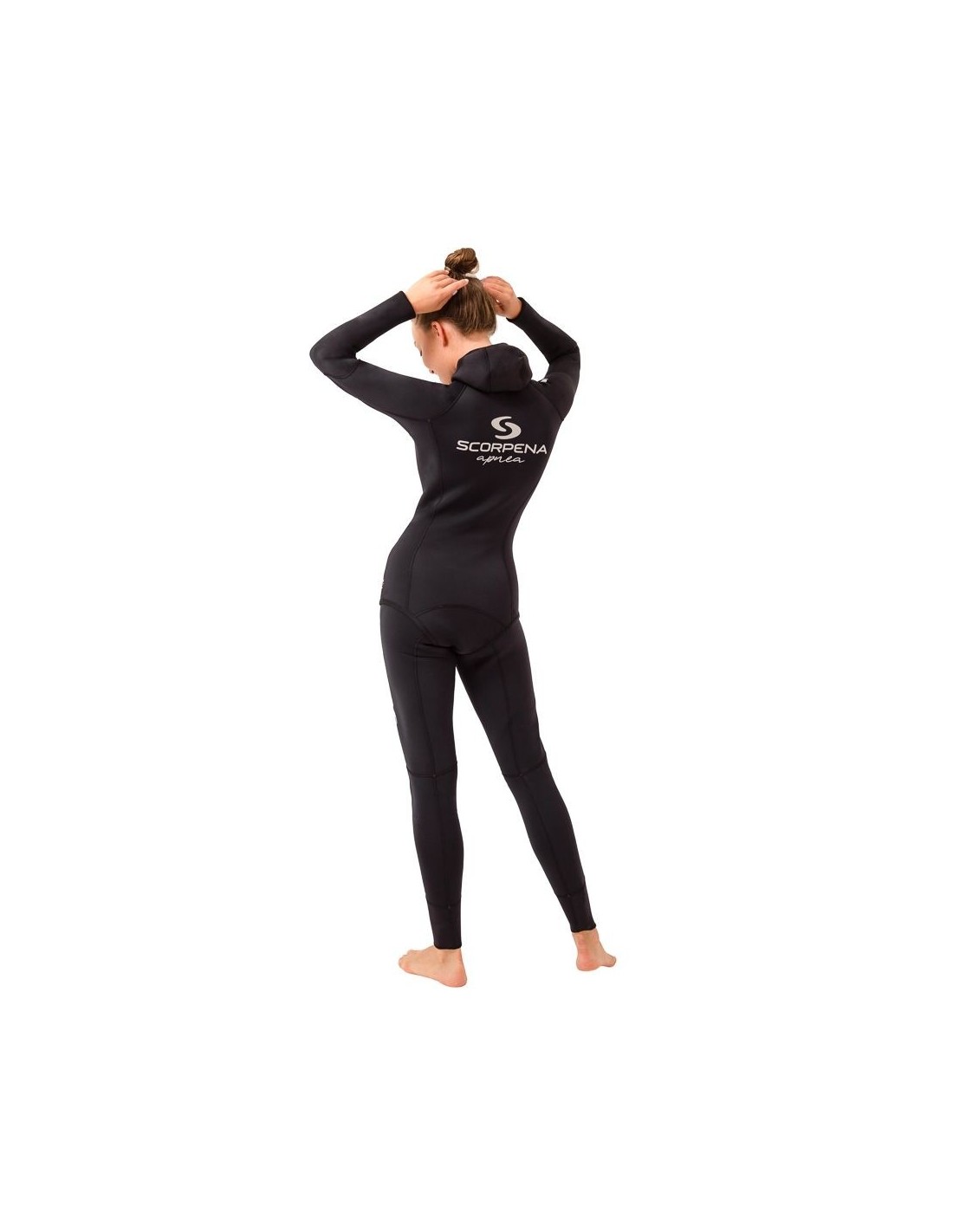 Moteriškas hidrokostiumas, dviejų dalių, be užtrauktuko. Viduje atvira pora. Storis 7mm
