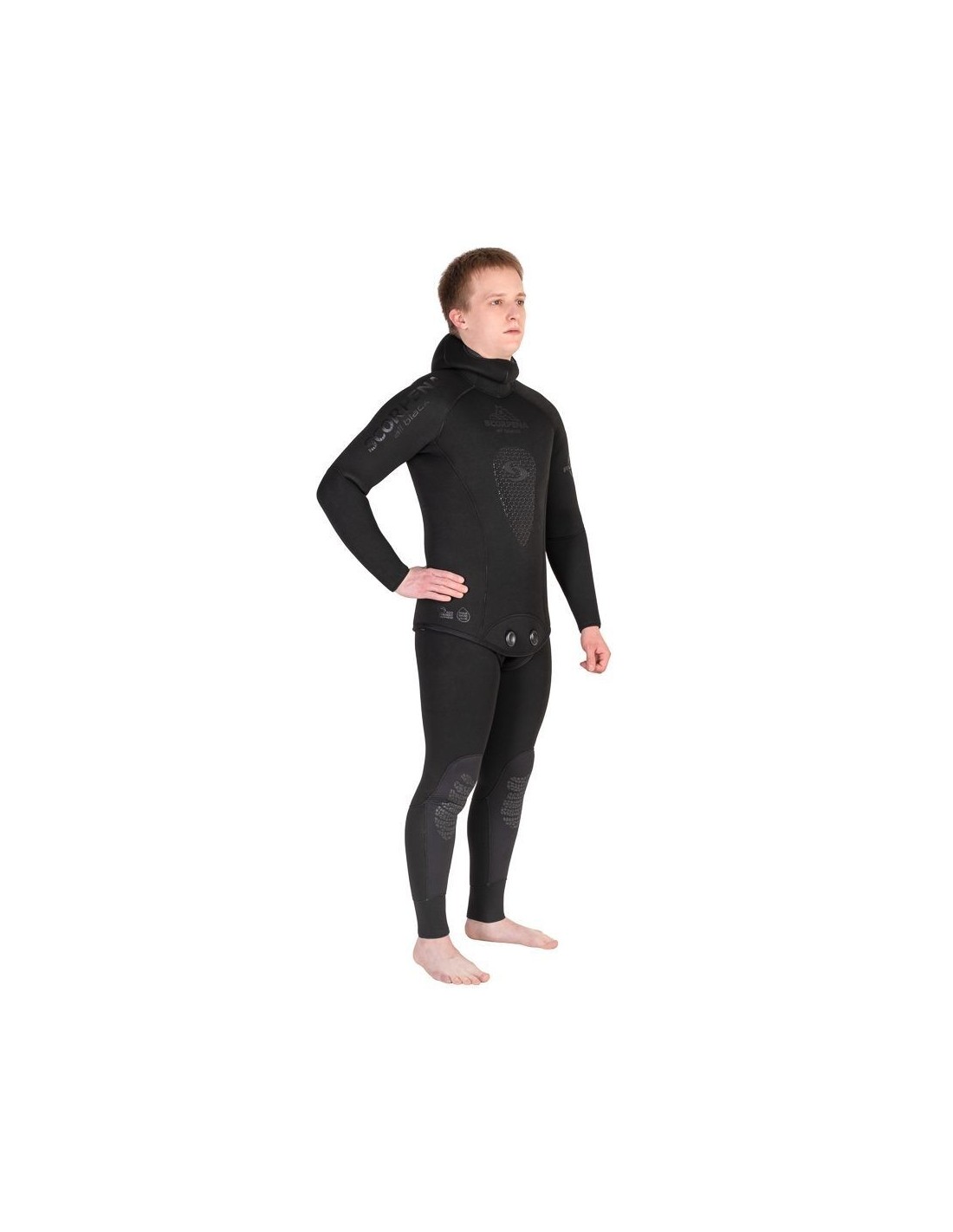 Scorpena All-Black hidrokostiumai yra pagaminti iš itin patvaraus, minkšto ir ekologiško Sheico neopreno, klijuoti naudojant naujus vandens pagrindo klijus be kvapo (nenaudojamas joks cheminis tirpiklis).