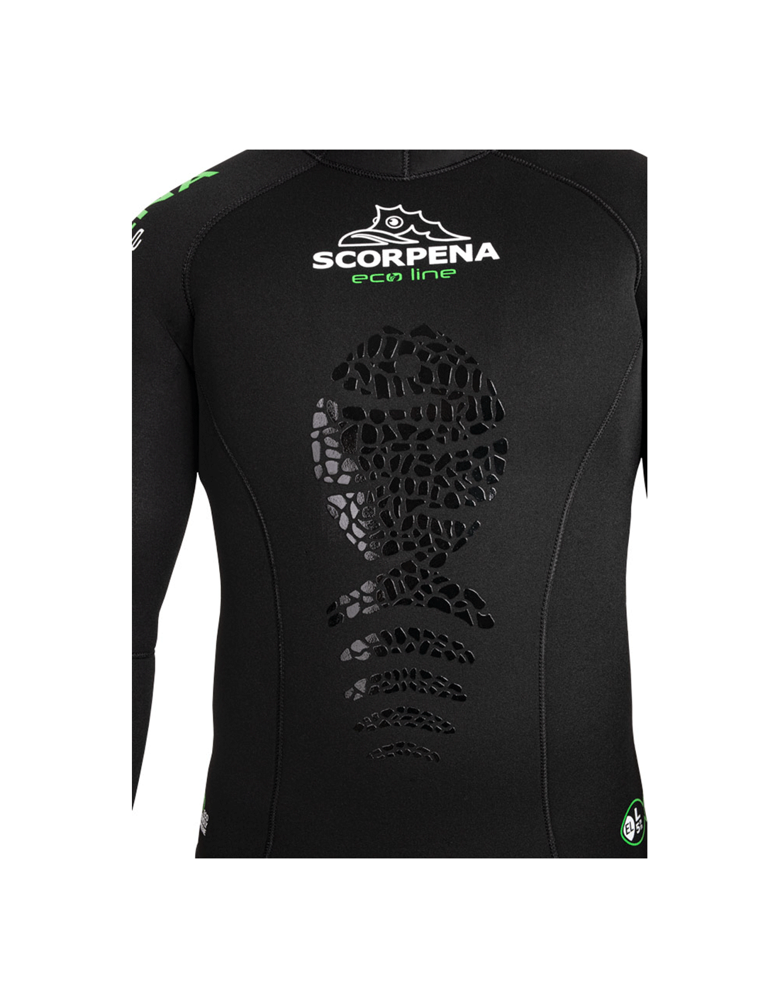 Scorpena EcoLine hidrokostiumai yra pagaminti iš itin patvaraus, minkšto ir ekologiško Sheico neopreno, klijuoti naudojant naujus vandens pagrindo klijus be kvapo (nenaudojamas cheminis tirpiklis).
