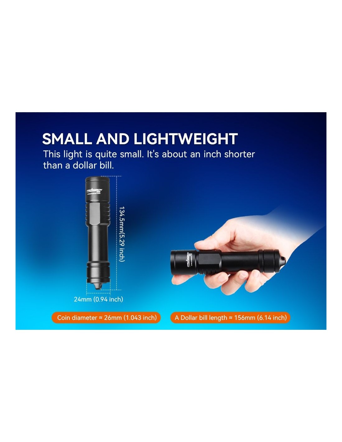 * Naudoja 1*18650/2*CR123A/2*16340 baterijas
