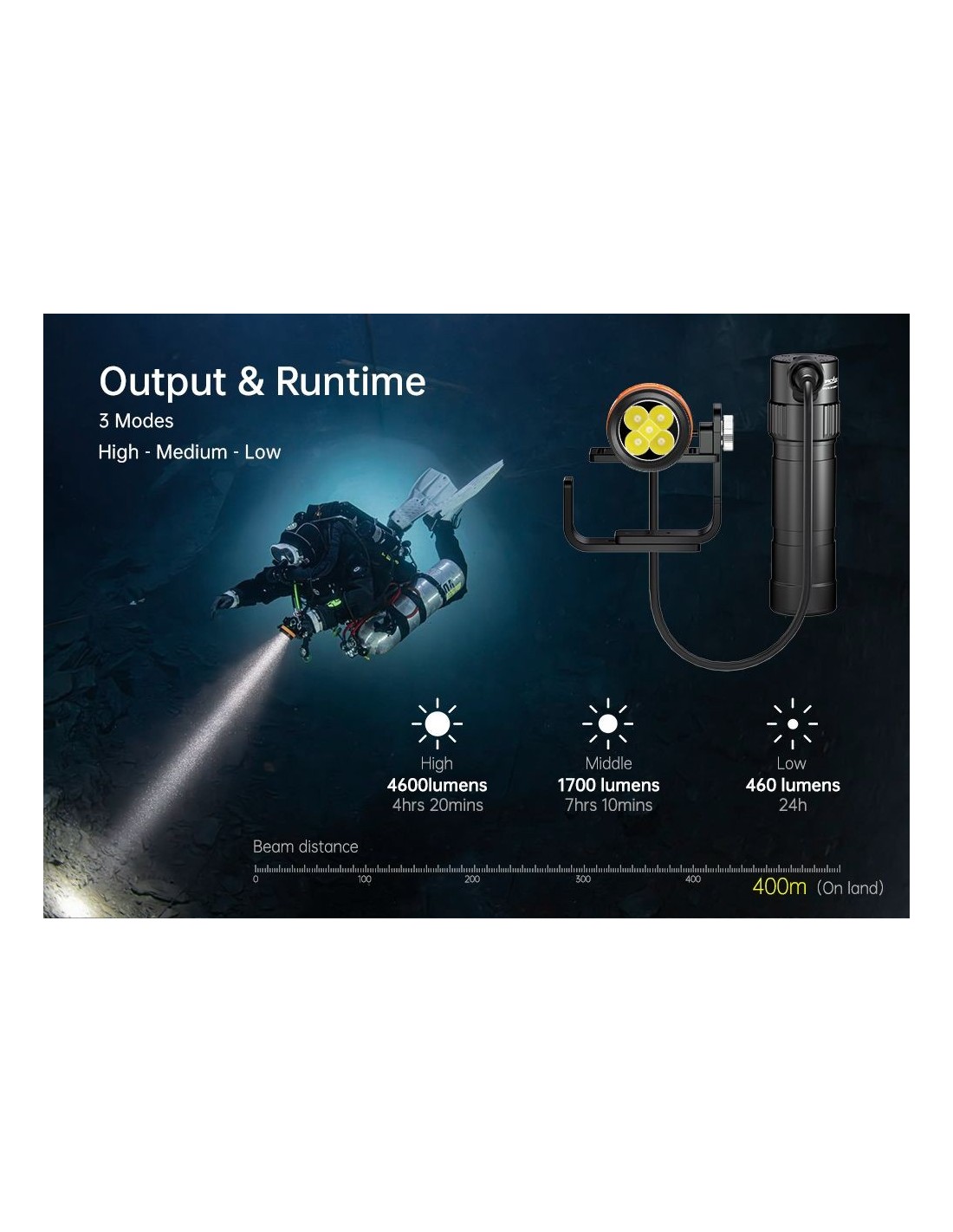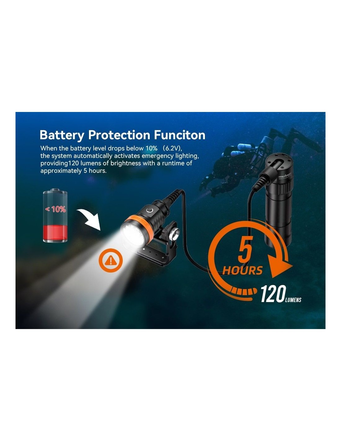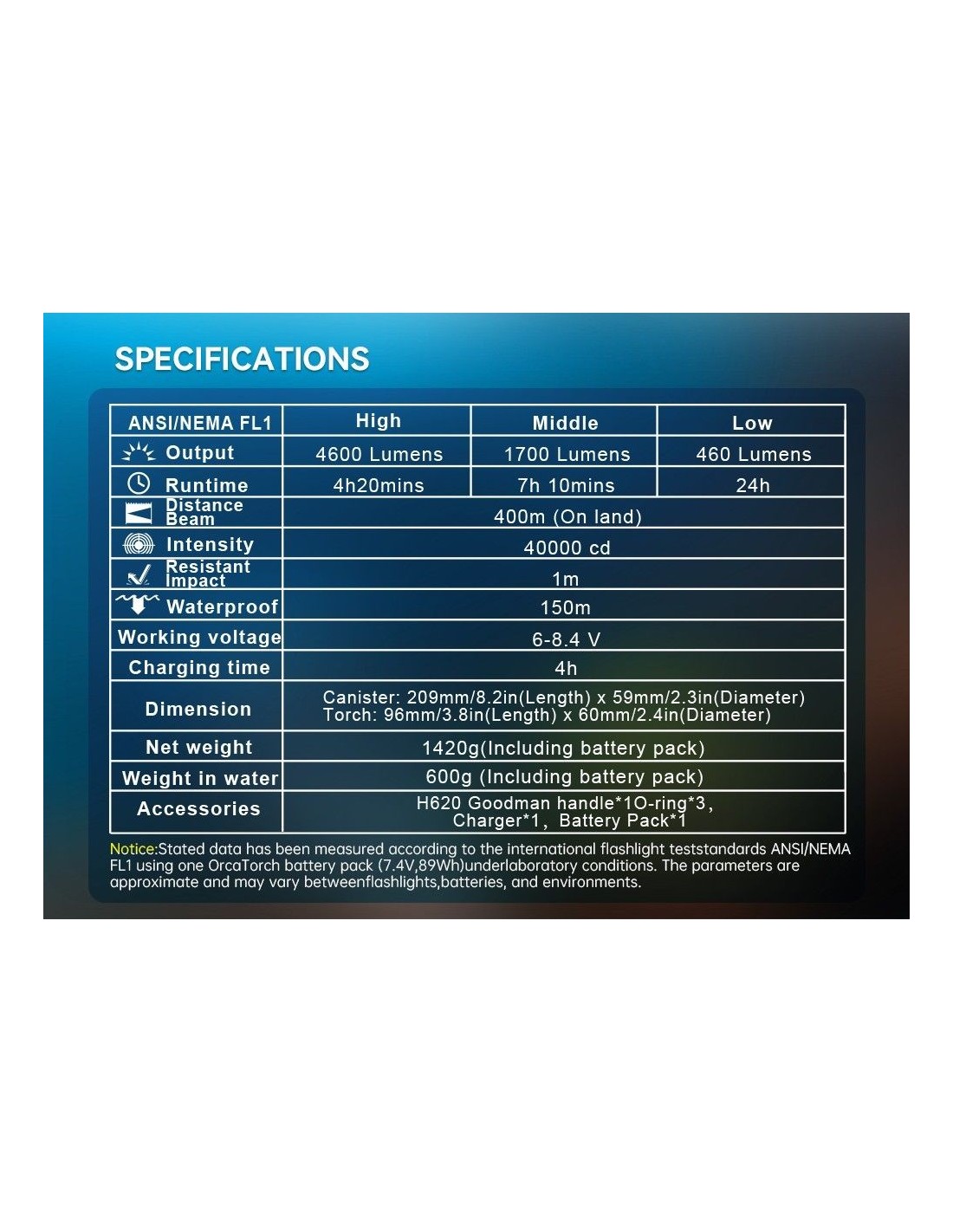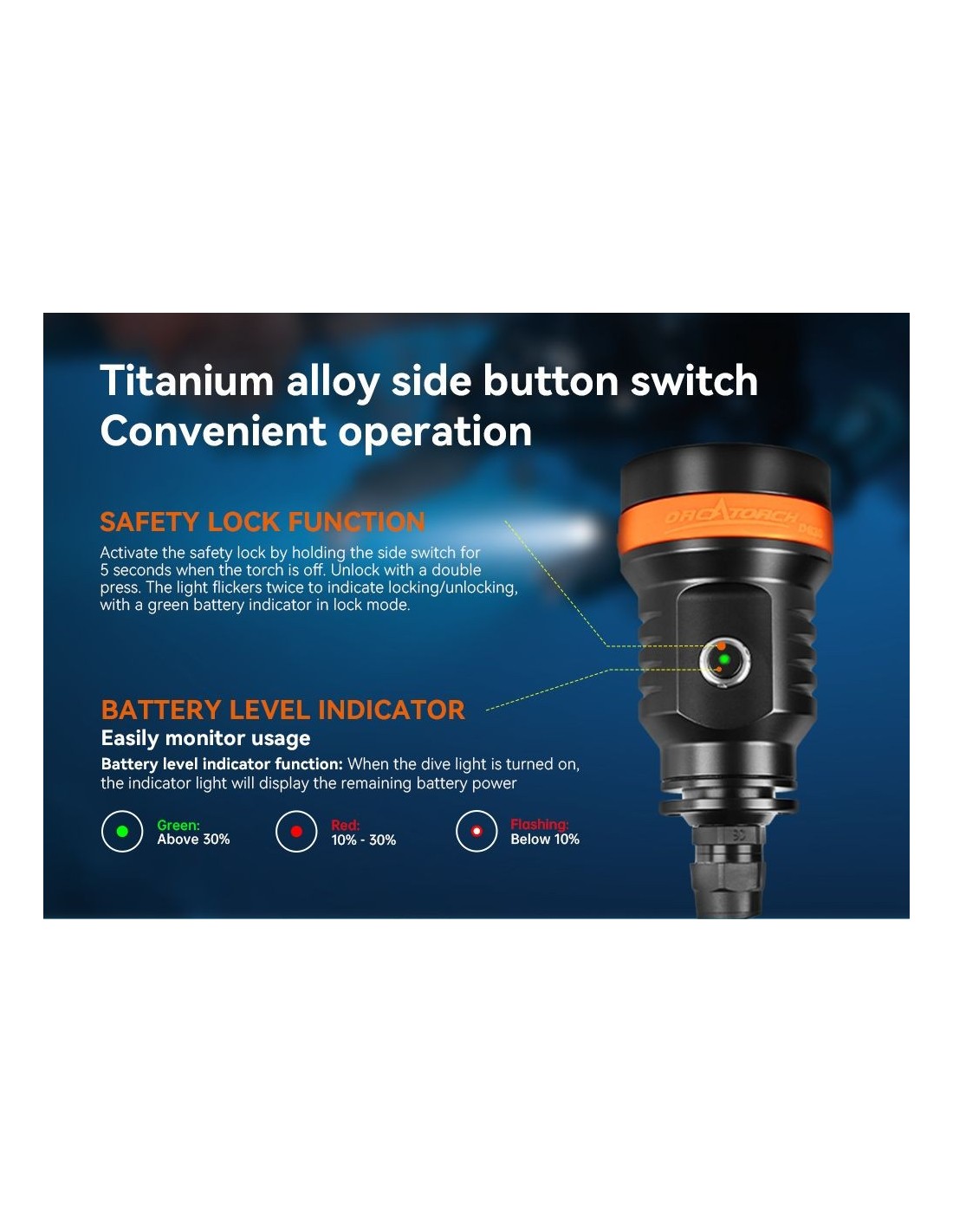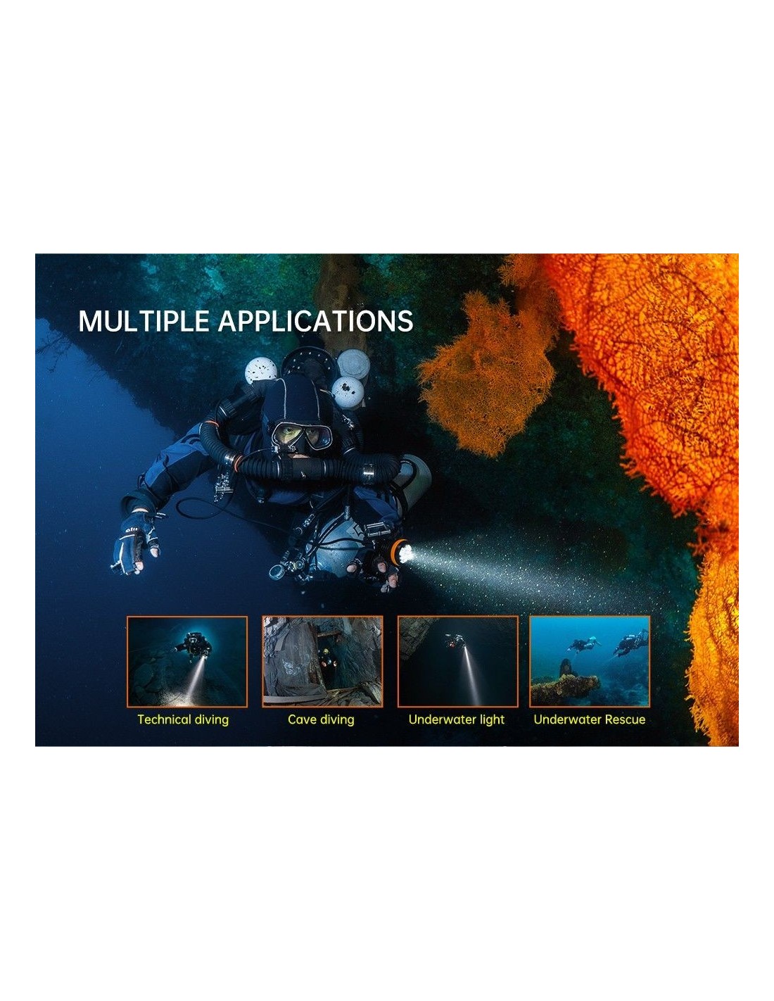 „OrcaTorch D630 v2.0“ – tai cilindrinis nardymo žibintas, specialiai sukurtas nardymui urvuose, nardymui po nuolaužas ir kitai techninei nardymo veiklai. Jis pasižymi maksimaliu 4600 liumenų ryškumu. „D630 v2.0“ turi 1,2 m ilgio reguliuojamo kampo laidą, kurį galima tvirtinti tiek 90° kampu gale, tiek 180° kampu šone, kad atitiktų įvairius naudojimo poreikius. Integruotas didelės talpos akumuliatorius užtikrina 4 valandų ir 20 minučių veikimo laiką esant dideliam ryškumui ir taip pat gali būti naudojamas kaip išorinė baterija. Kai akumuliatoriaus lygis nukrenta žemiau 10 % (6,2 V), akumuliatoriaus apsaugos funkcija automatiškai įjungia avarinį apšvietimą, siūlydama 120 liumenų šviesos srautą ir maždaug 5 valandų veikimo laiką, kad būtų užtikrintas jūsų saugumas.