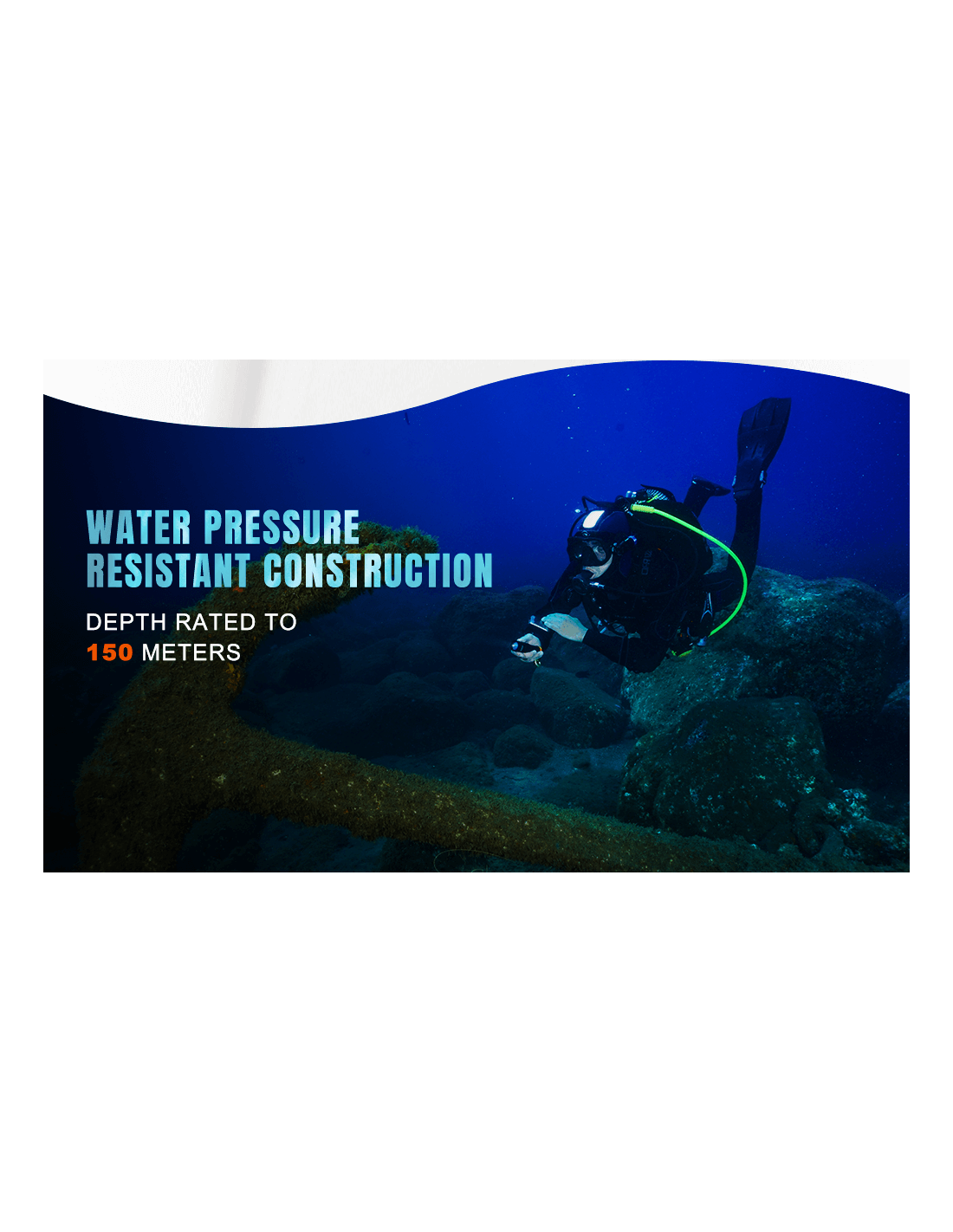 * Grūdintas stiklas iš dviejų pusių, atsparus vandens slėgiui giliame vandenyje