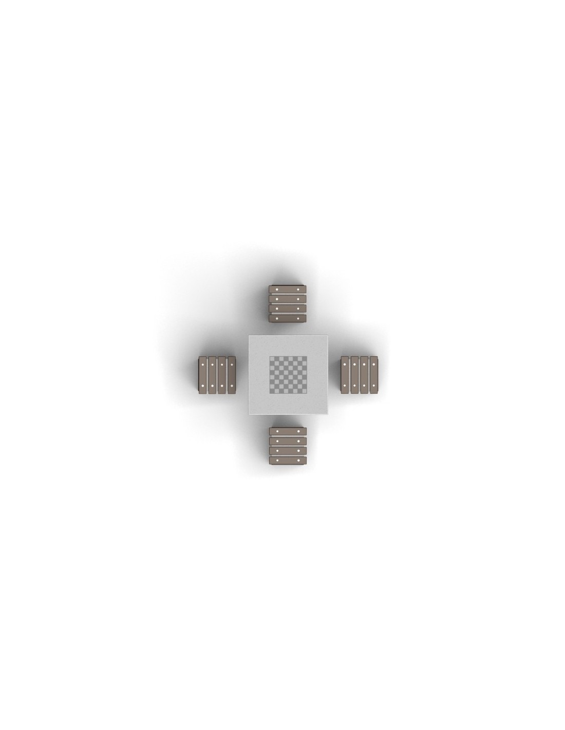 Pastatomas kvadratinis betoninis lauko šachmatų stalas su 4 kėdutėm