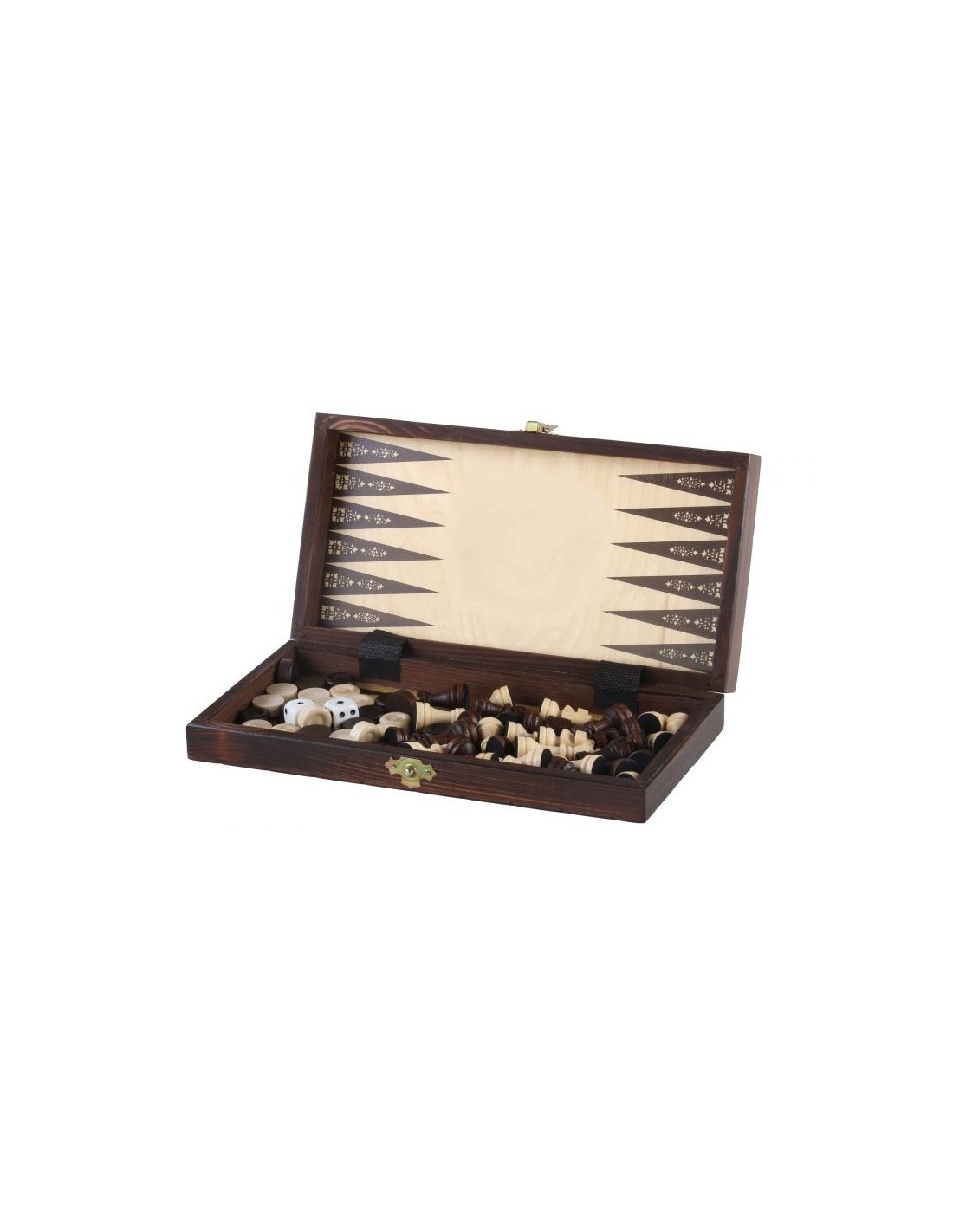 Rinkinyje medinių šachmatų šaškių ir nardų komplektas
