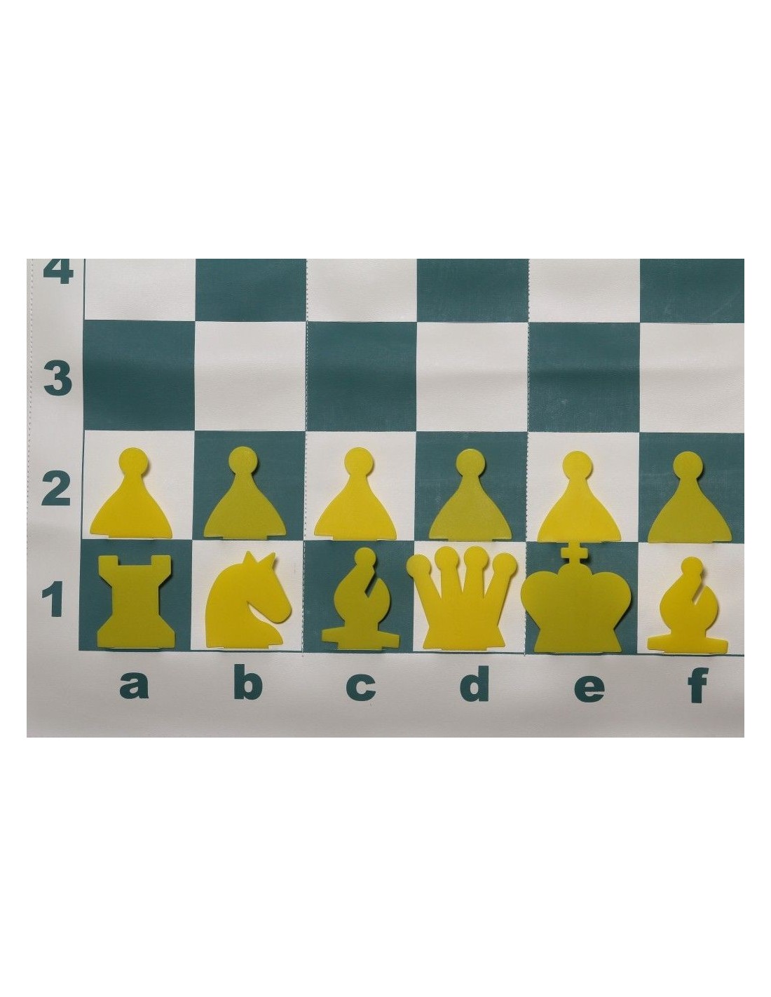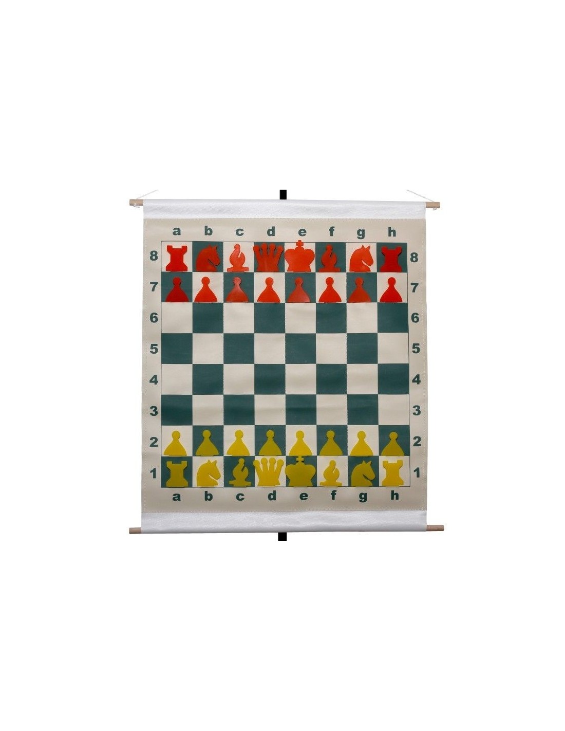 Vinilinė šachmatų demonstracinė lenta su plastikinėmis detalėmis, kurios turi būti įdėtos į specialius lentos medžiagoje išpjautus plyšius. Ši lenta puikiai tinka mokyti, analizuoti ar rodyti vykstantį šachmatų partiją.