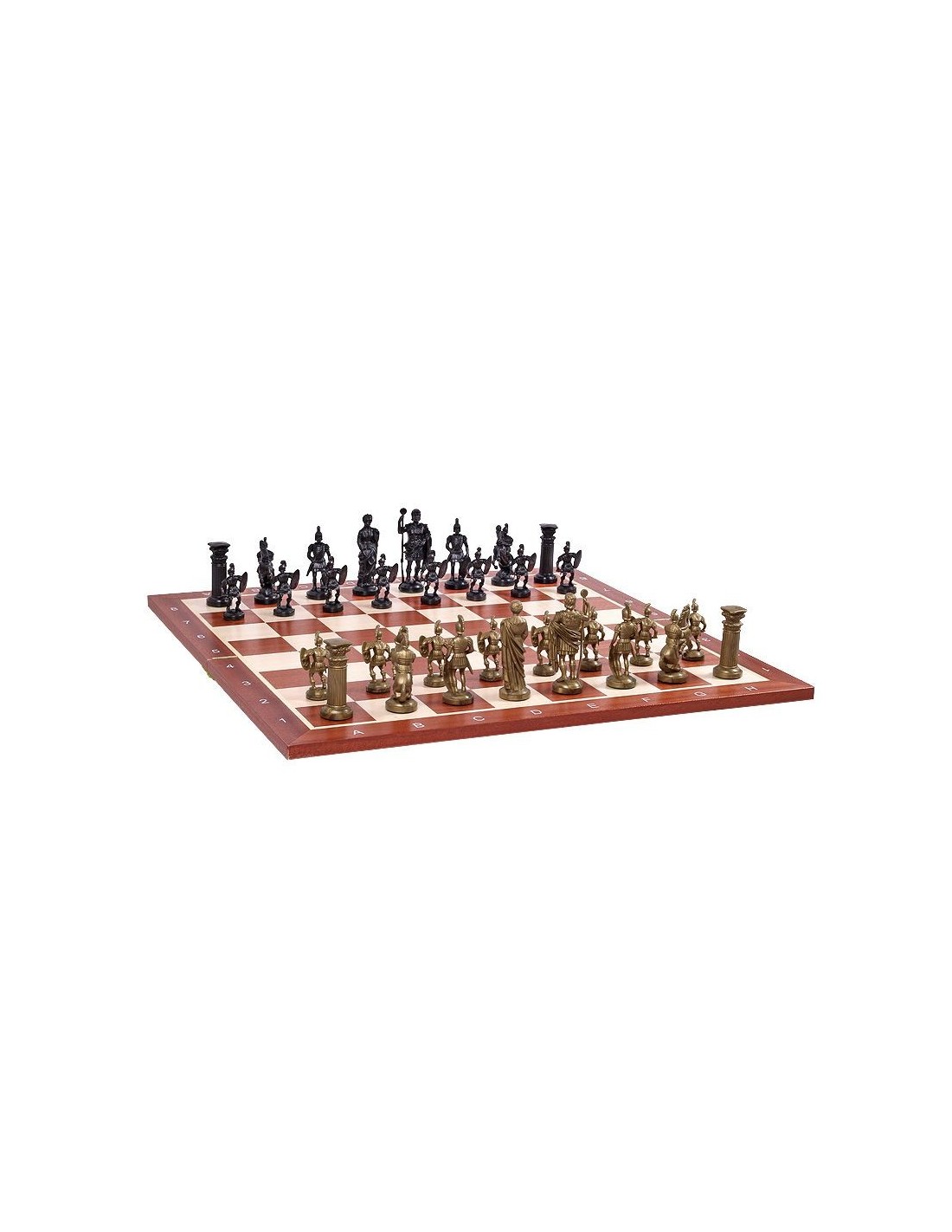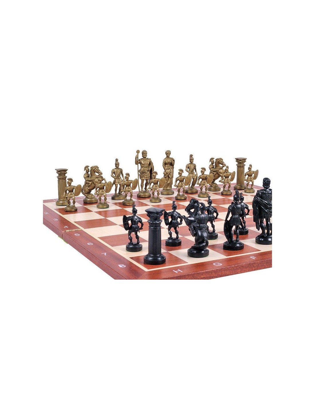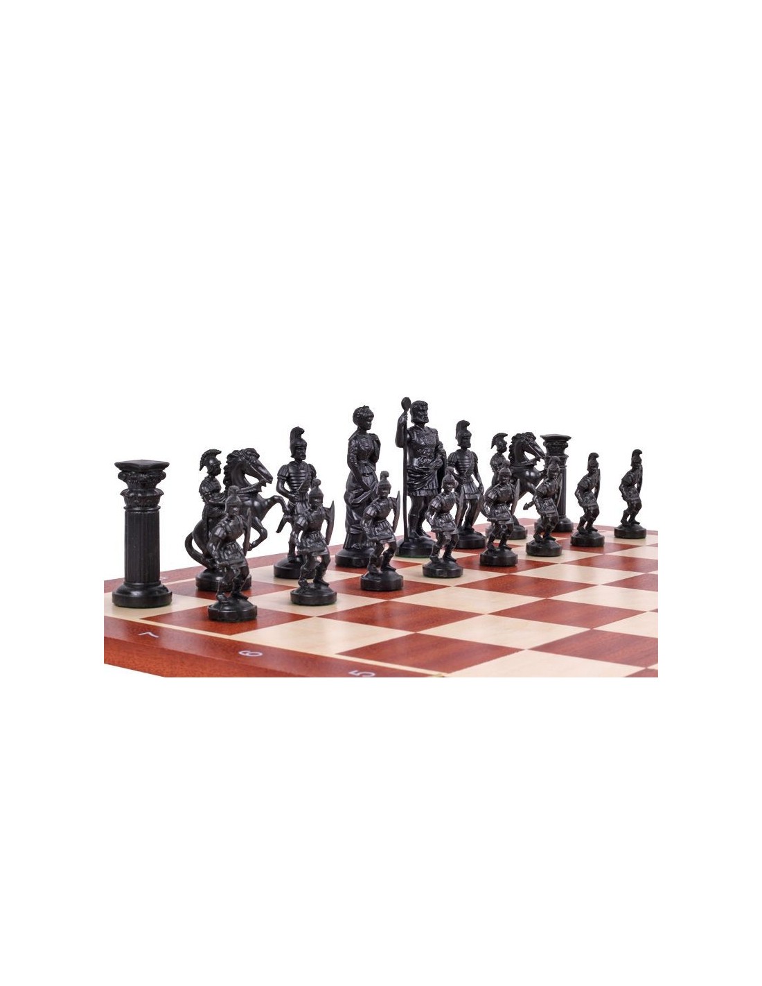Šios romėniško dizaino šachmatų figūrėlės pagamintos iš plastiko ir supakuotos į maišelį kaip ekonomiškas rinkinys. Dėka veltinio pagalvėlių apačioje, šios figūrėlės gražiai slysta per lentą. Figūrėlės yra pilnavidurės, todėl yra sunkesnės ir gerai laikosi ant lentos.