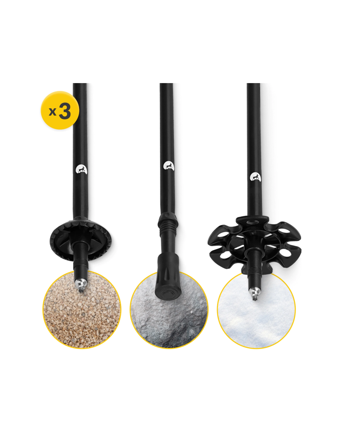 „PEAK+ MOUNTAIN GOAT“ šiaurietiško ėjimo ir žygio lazdos turi keičiamus antgalius . Jos tinka visų tipų reljefui ir veiklai, nepriklausomai nuo sezono. Nuo šiol sniegas, purvas, asfaltas ar purvina žemė nebekels jokių kliūčių ! Su jomis galite suplanuoti rudens kelionę į kalnus arba leistis į ankstyvą pavasarį žygį pelkėmis. Patvarios medžiagos užtikrina tinkamą pasiruošimą ilgoms kelionėms.