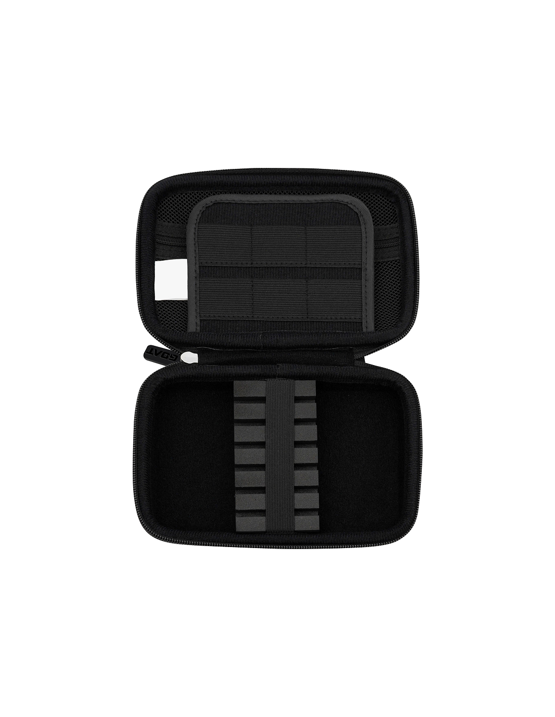 Yra kišenėlės su užtrauktukais smiginio aksesuarams.