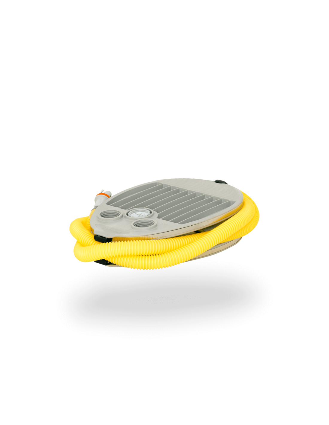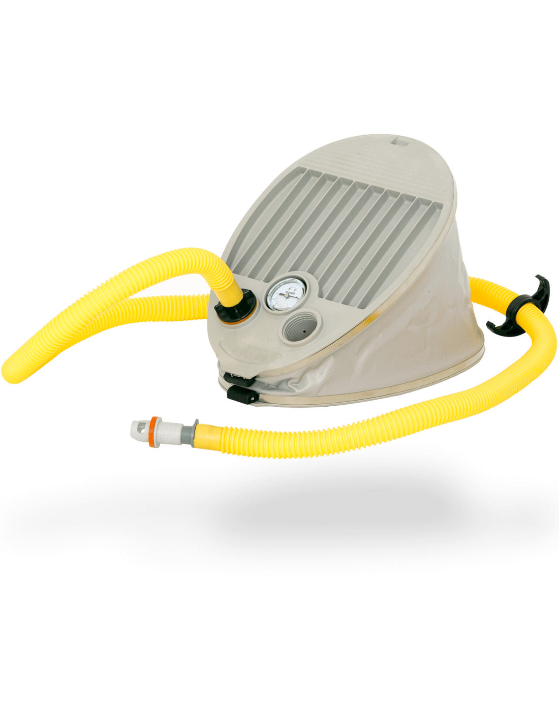 Ši kojinė pompa su įmontuotu manometru idealiai tinka mažesniems „AirTrack Factory“ gaminiams pripūsti.