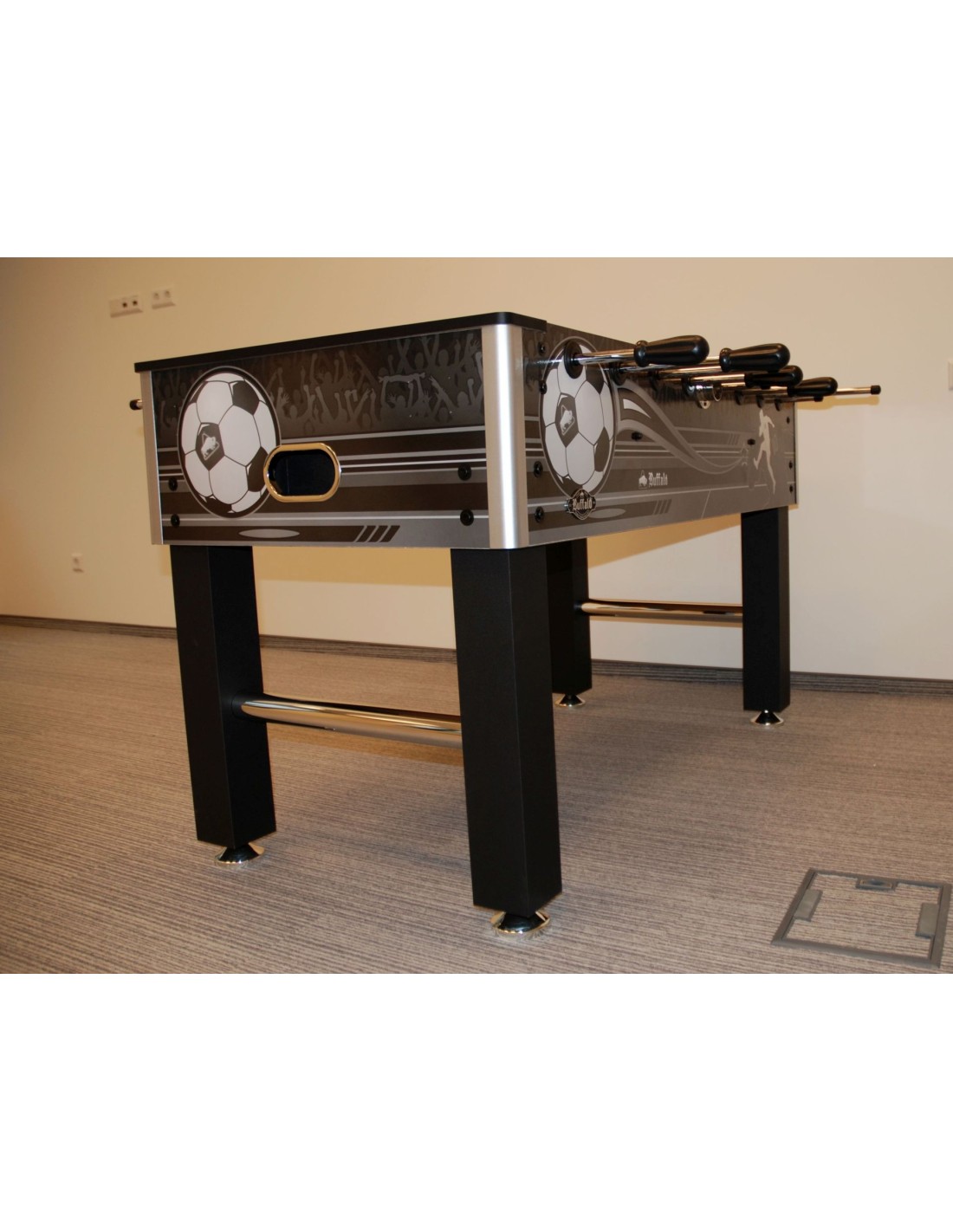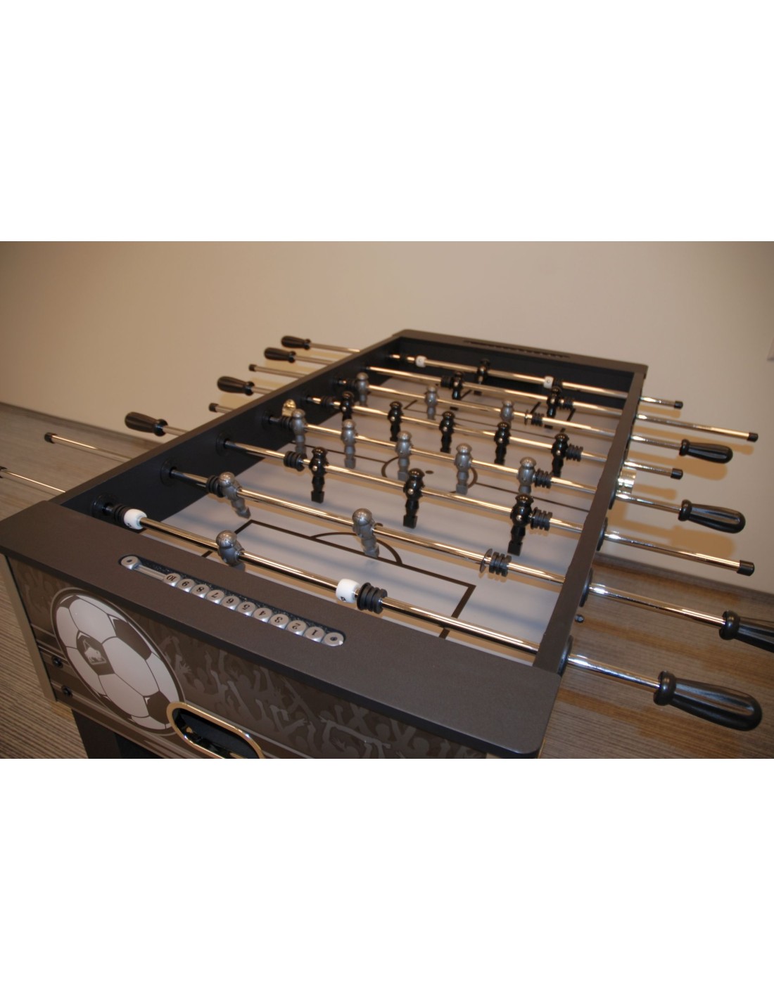 Futbolo stalas Black Bandit II - naujo dizaino Bandit futbolo stalas, optimalus pasirinkimas įgudusiems žaidėjams, kuriems reikia didelės masės stalo su masyviais 16 mm skersmens pilnaviduriais strypais.Truputis rankų miklumo surenkant, ir jis paruoštas Jūsų nesuvaldomoms futbolo emocijoms!Pakankamai didelė stalo masė užtikrina stabilų ir teisingą žaidimą, kad papildomais neleistinais judesiais nebūtų pasiektas įvartis.Stalo korpuso sienelių storis 28mm, užtikrina stalo atsparumą intensyviam naudojimui bei suteikią masyvią išvaizdą.Stalo visuose keturiuose šonuose žaidimo aikštelė yra su nuolydžiu, kuris užtikrina, kad žaidimo metu nebus jokių "mirtinų" taškų sustojant kamuoliukui.Rekomenduojame Black Bandit II stalą visiems vertinantiems kokybišką žaidimą, tai optimalus kainos ir kokybės santykis.