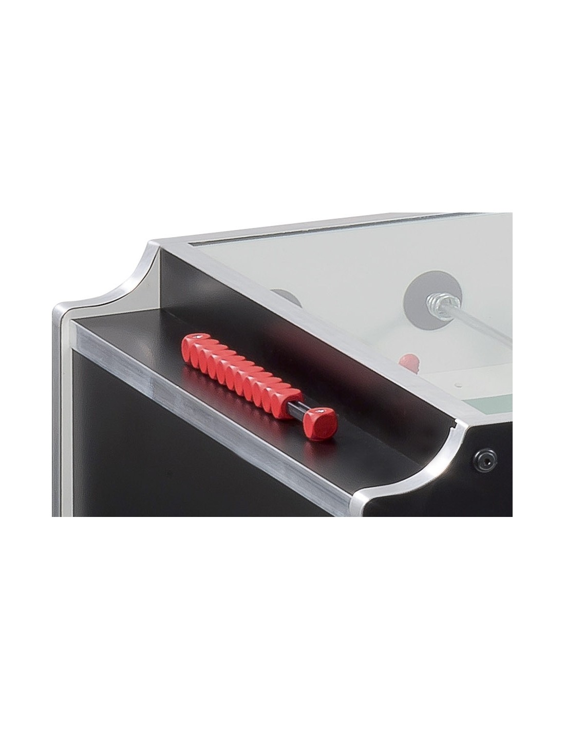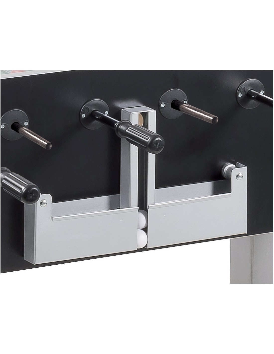 Standartiniai vientisi strypai išlenda priešingoje futbolo stalo pusėje pagal tarptautinių varžybų standartus.